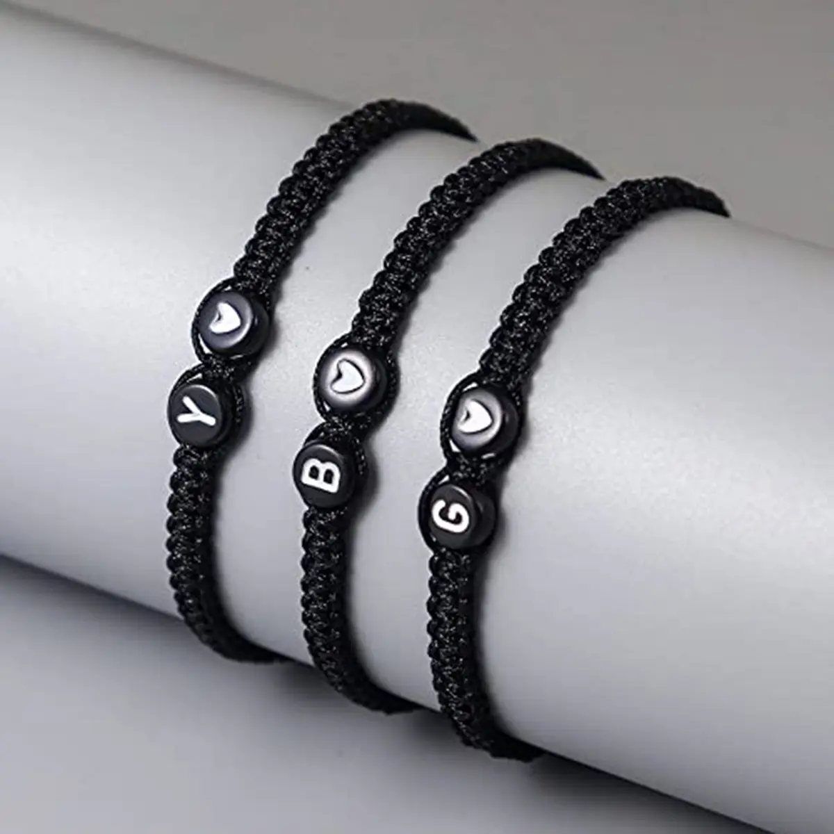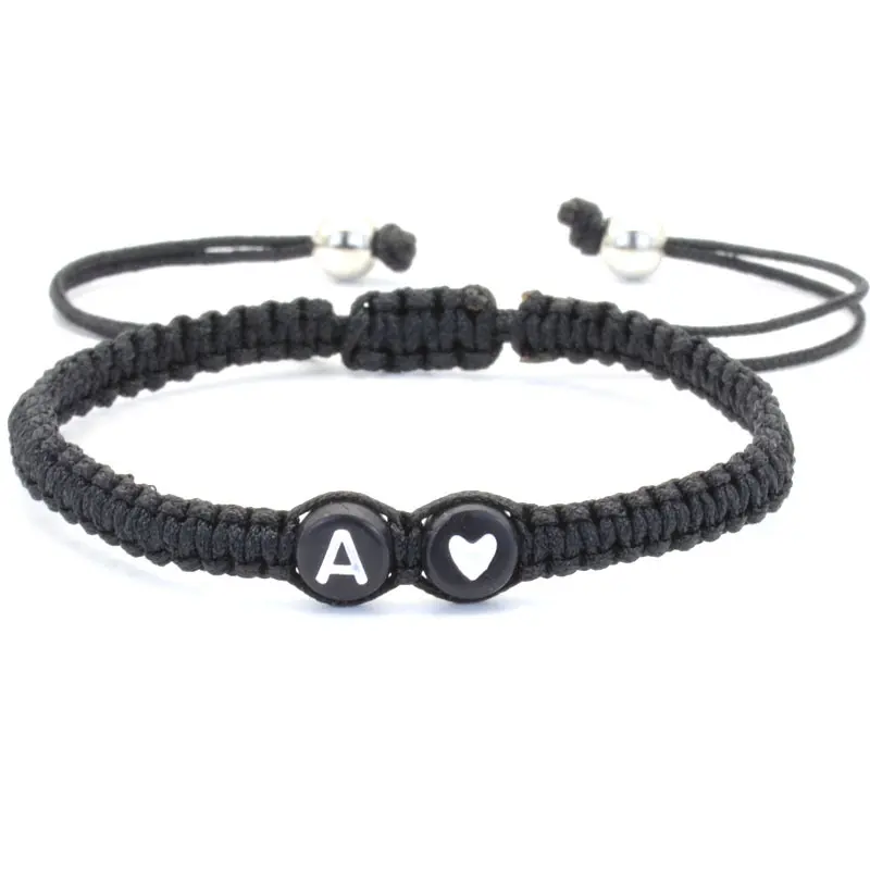 Made of polyester rope, it's comfortable and safe.Exquisite, hand-woven by craftsmen, it's a fashionable handicraft.The bracelet features a heart and letter charm, like "A" in the image.