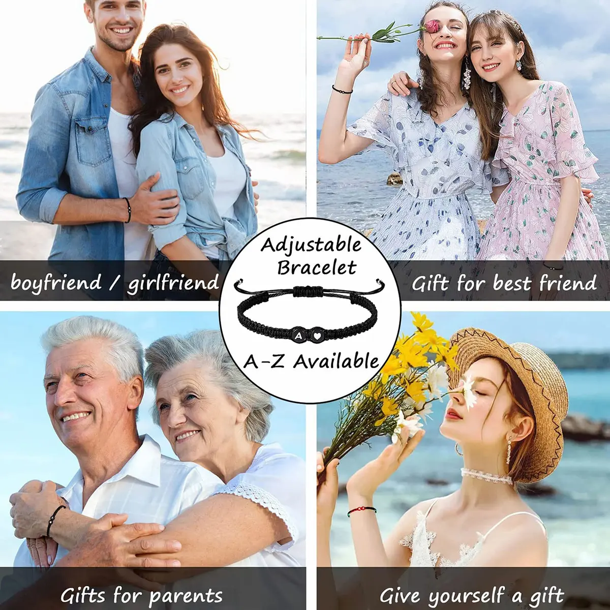 🎀Initial Heart Bracelet - 26 Alphabet Braided Adjustable Bracelet for Women, Men, Teen Girls and Boys Jewelry Love