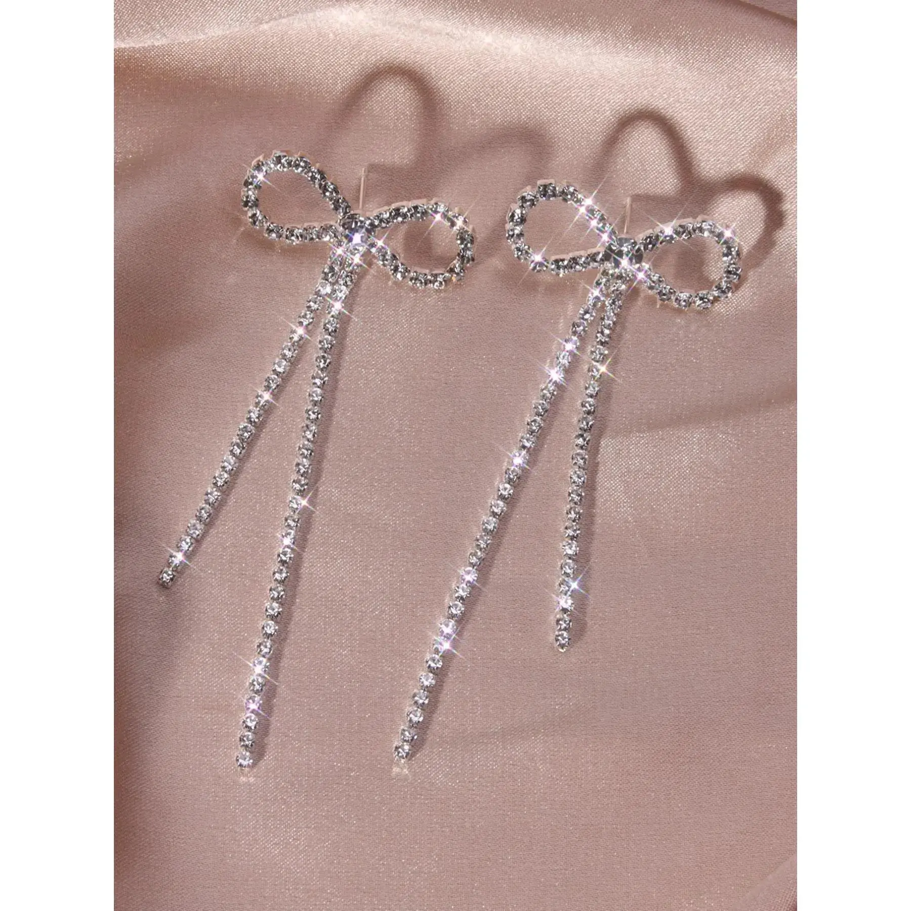 [Elegant Design]: These women's dangle earrings feature a unique bow and rhinestone design, adding a touch of elegance to any outfit.