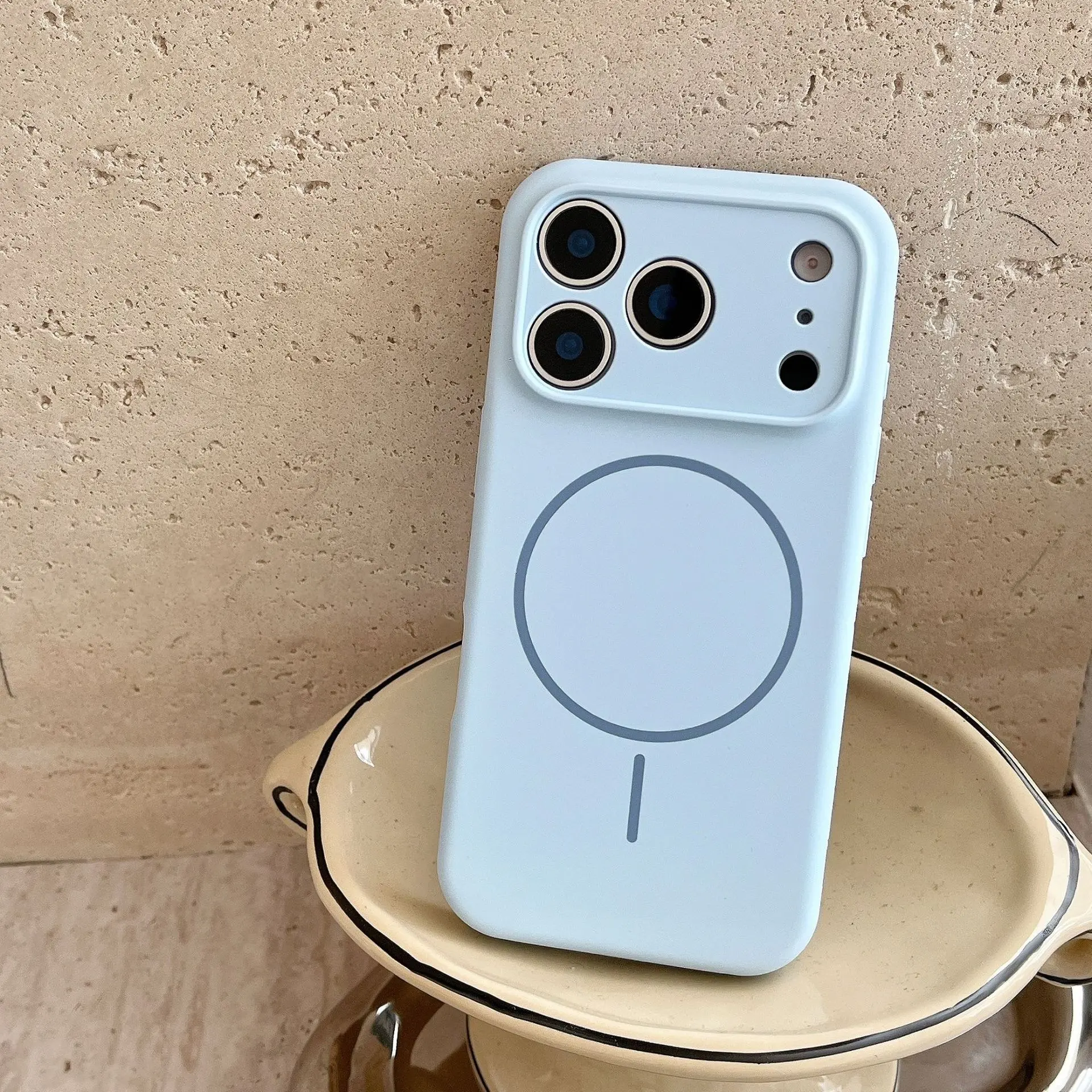 Luxury Magnetic Soft Silicone Phone Case for iPhone 16/15/14/13/12 Pro Max Plus, Wireless Charging Compatible, Drop Protection