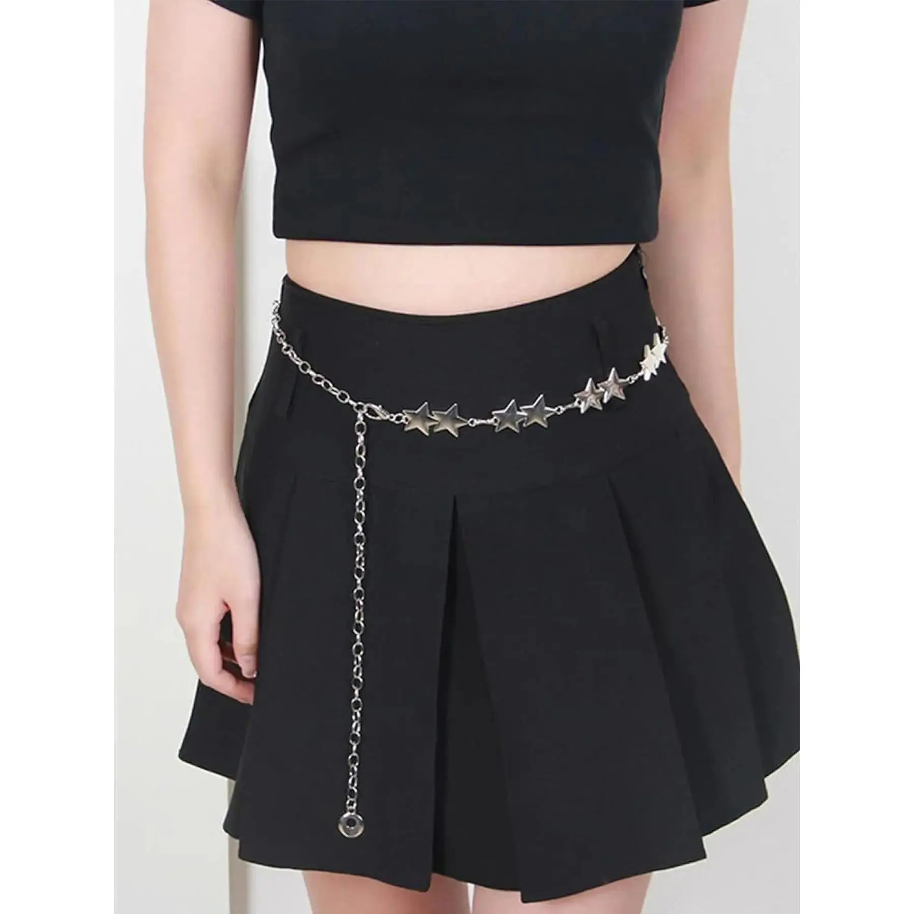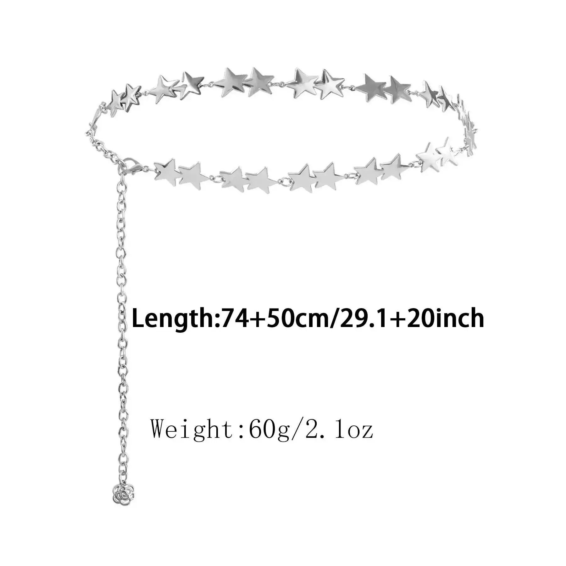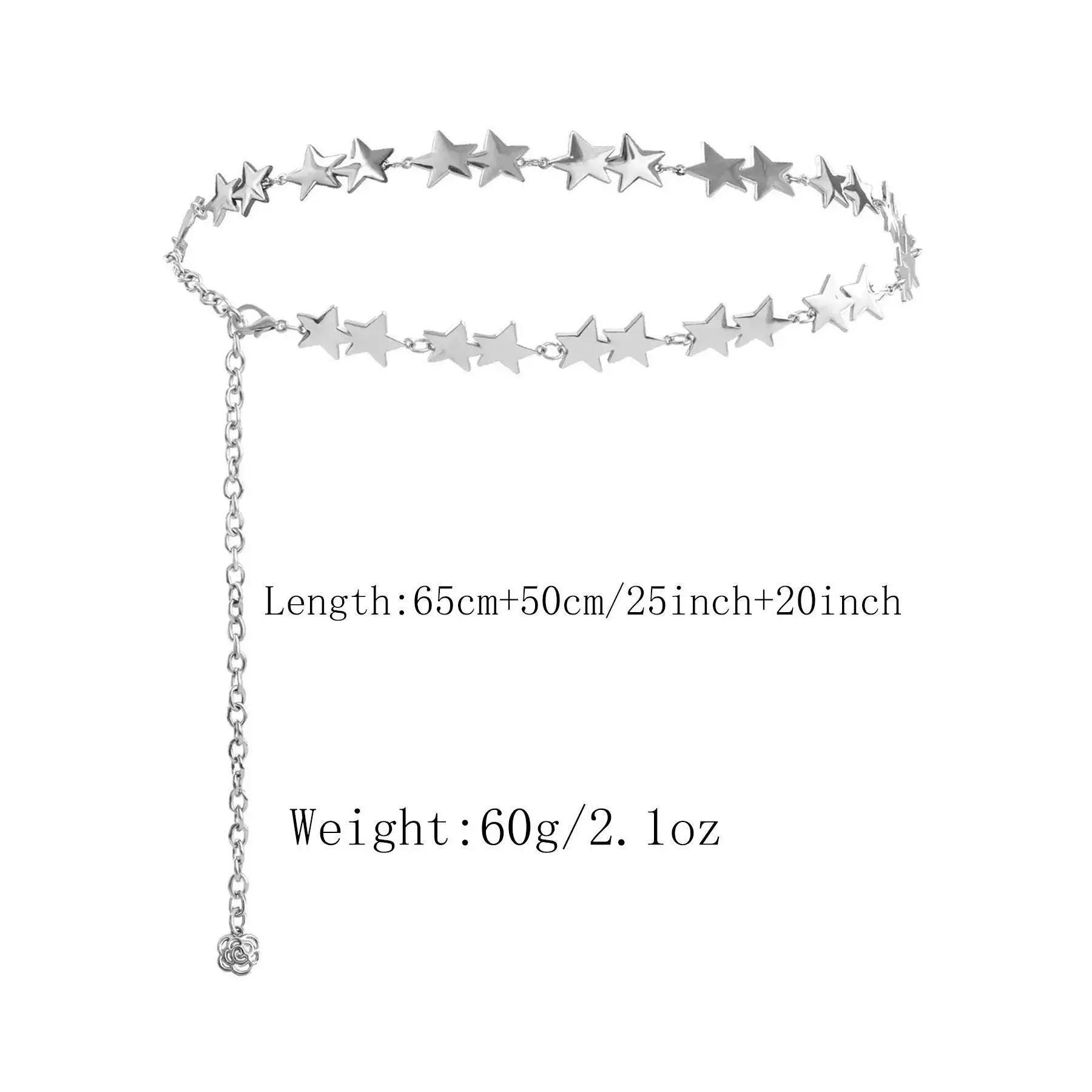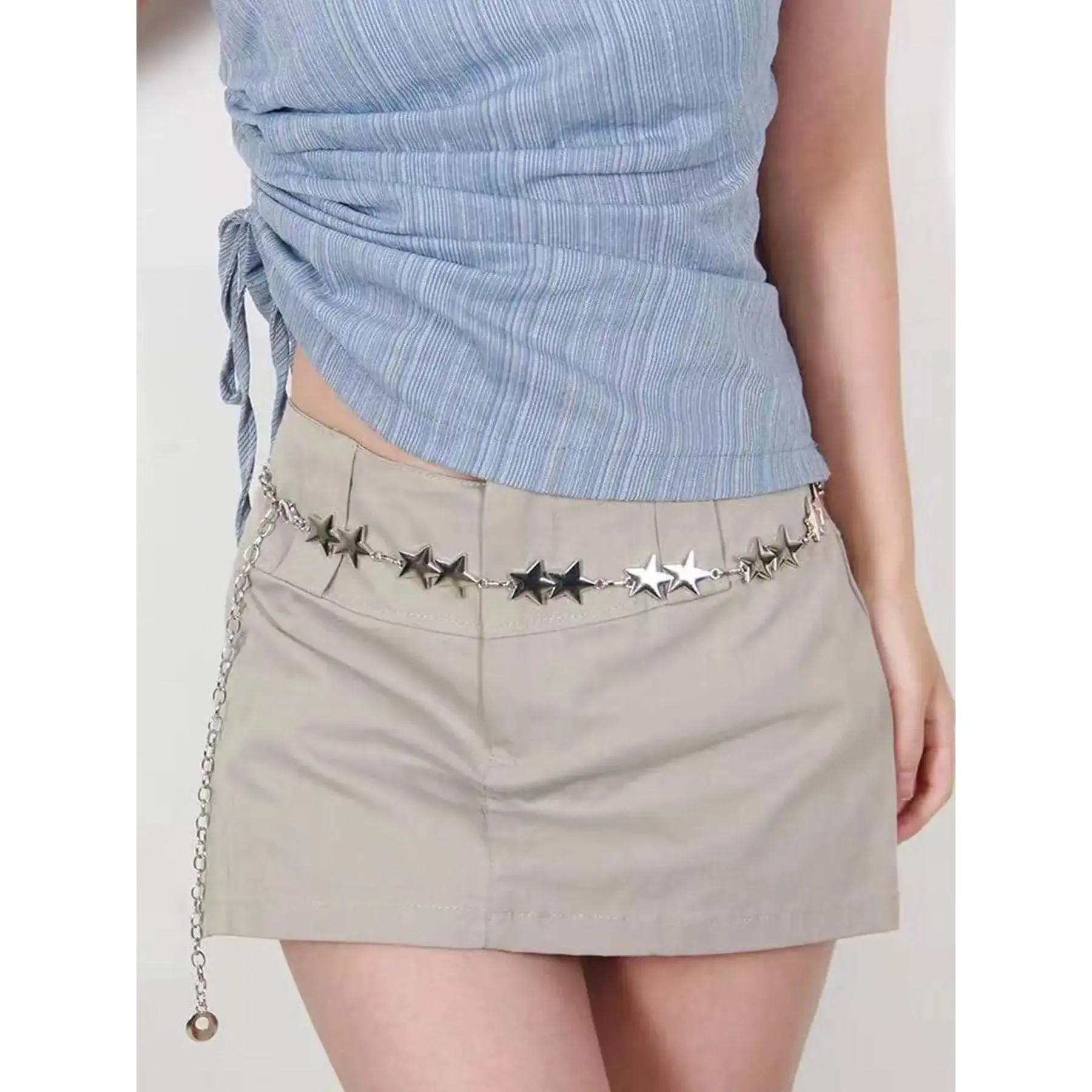 Silver Star Chain Belt Western Metal Belt for Women Punk Chain Belts for Dresses Jeans Waist Chain Belt Y2k Emo Body Jewelry Star Decorated Belt