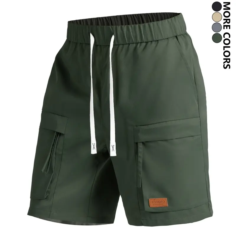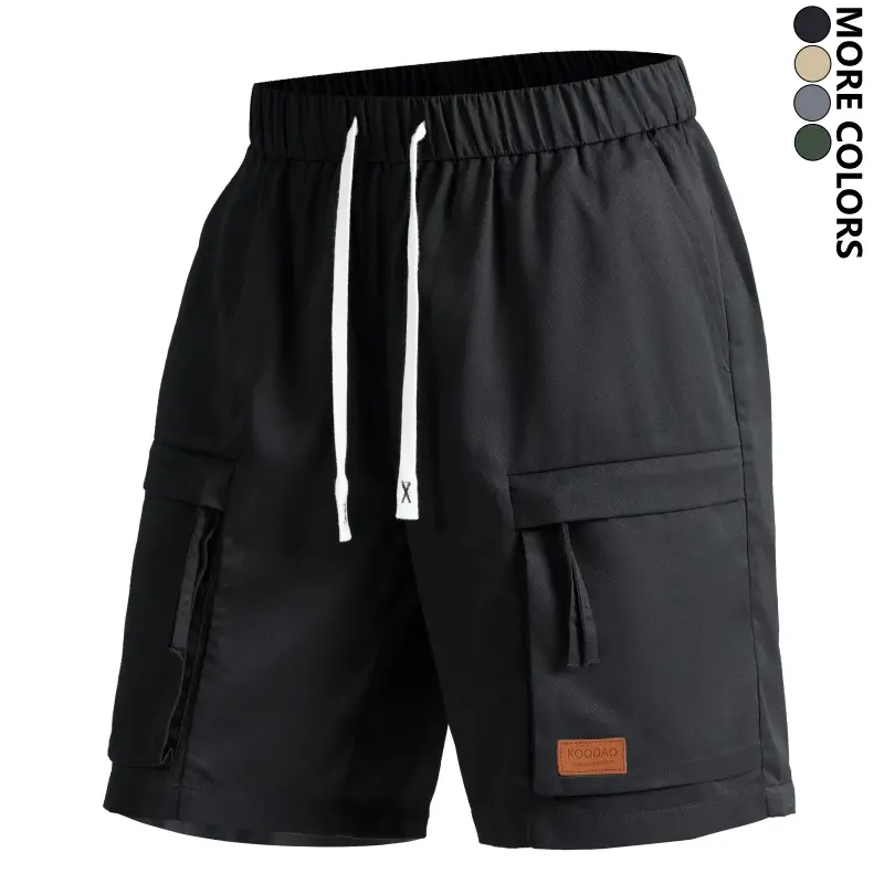 Men’s summer solid-color cargo shorts—fashionable, versatile, with large pockets and an adjustable drawstring waist; suitable for everyday work, casual wear, and outdoor sports.
