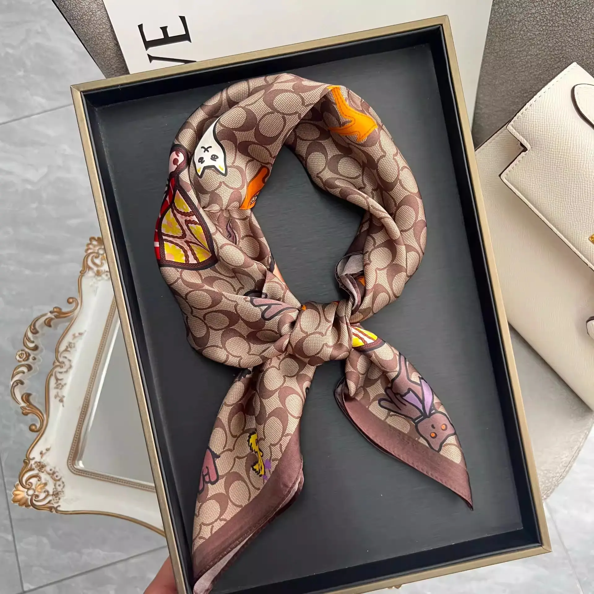 Women's Square Scarf, Silk Scarf, Women's Summer Thin Sunscreen, Spring and Autumn Women's Headscarf, Baotou Scarf, Tie Bag, Hairband, Belt, Shawl, Face Mask