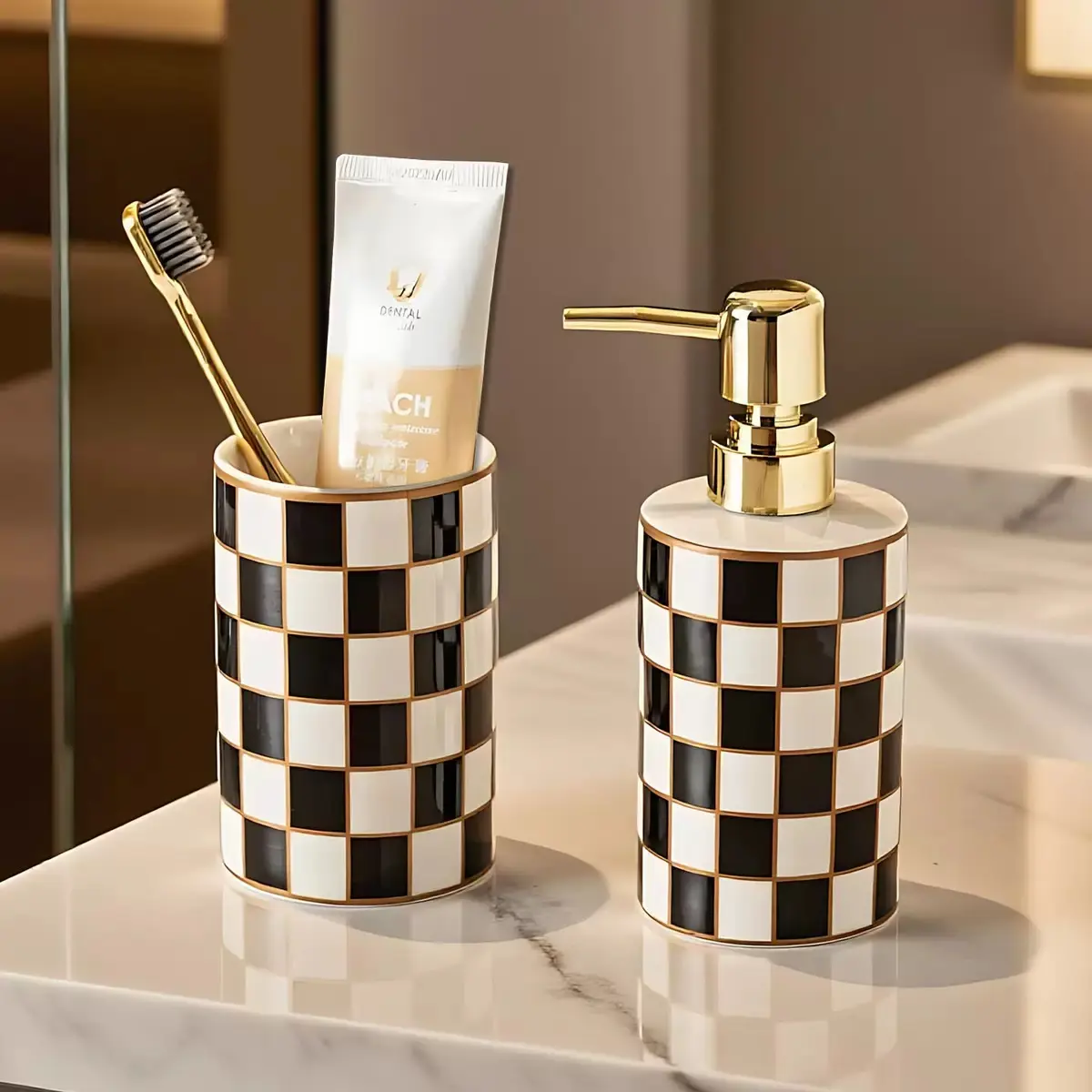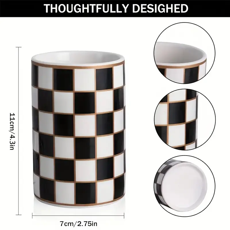 Modern Black White Ceramic Toothbrush Holder Grid Bathroom Vanity Organizer for Countertop Storage Decorative Shower Bathroom Essentials
