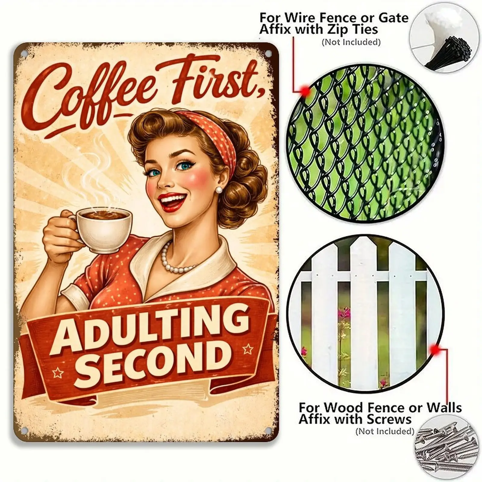 This sign is perfect for sticker shopping. It's a fun and quirky item that can brighten up any room. The sign's design is simple yet effective, making it a standout piece. It's a thoughtful gift for anyone who loves coffee and has a sense of humor. Enjoy the charm of this vintage retro sign!