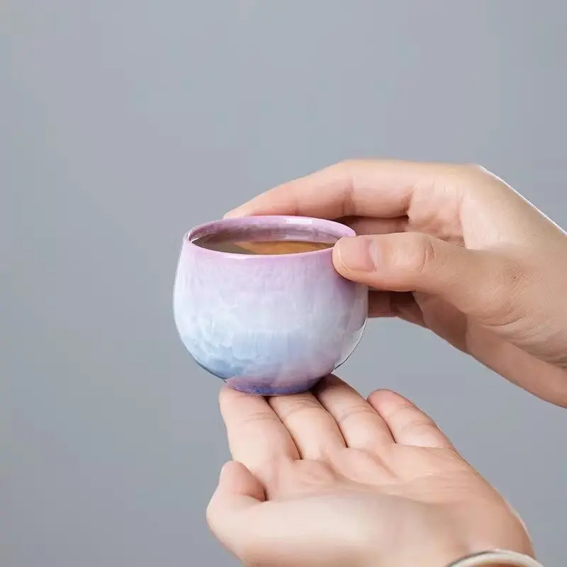 T13. Handmade Jingdezhen Yao Bian crystal glaze tea cup — personal use, Zen-style kung fu teacup