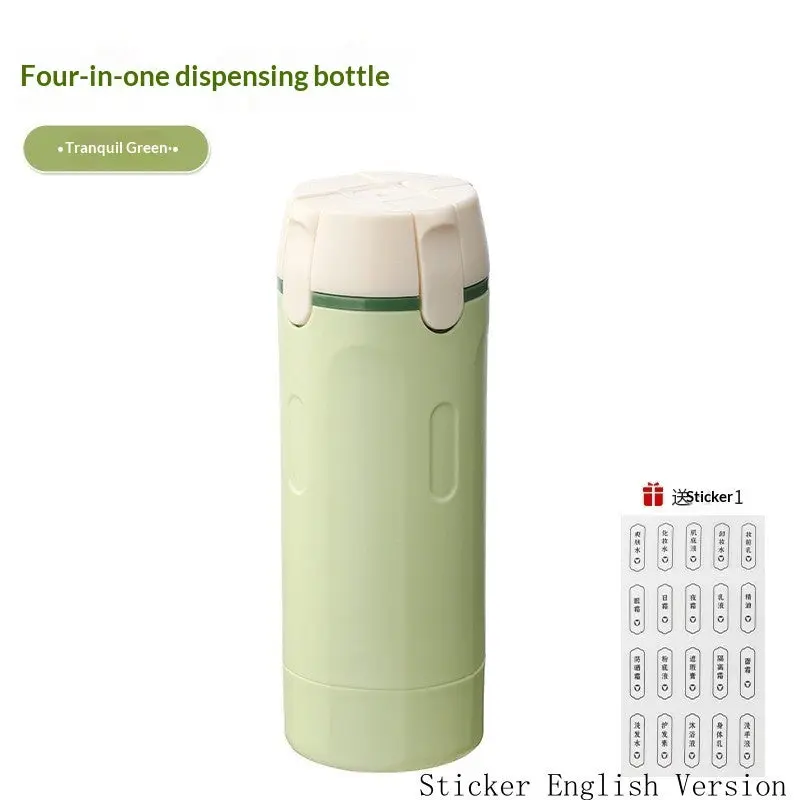 1. [4-in-1 Travel Set] This innovative 4-in-1 travel dispenser offers travel convenience. Its compact design cleverly houses four independent refillable bottles, perfectly suited for your cleanser, shower gel, lotion, and makeup remover, making your travel grooming routine easy and convenient.