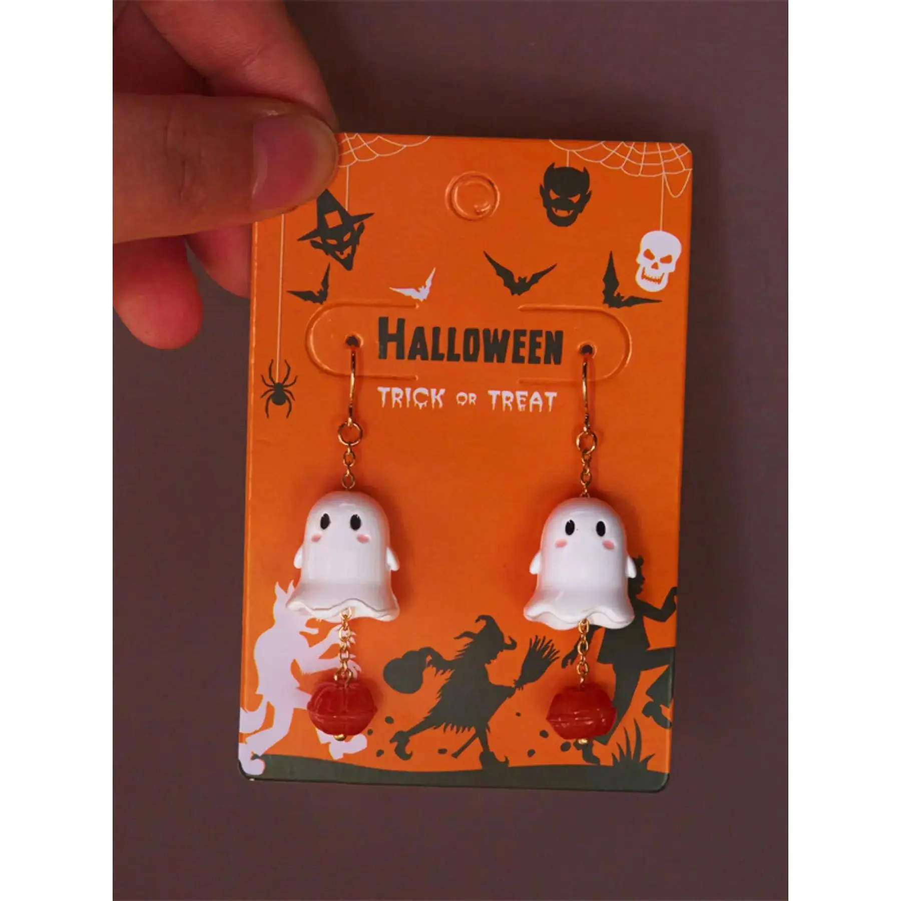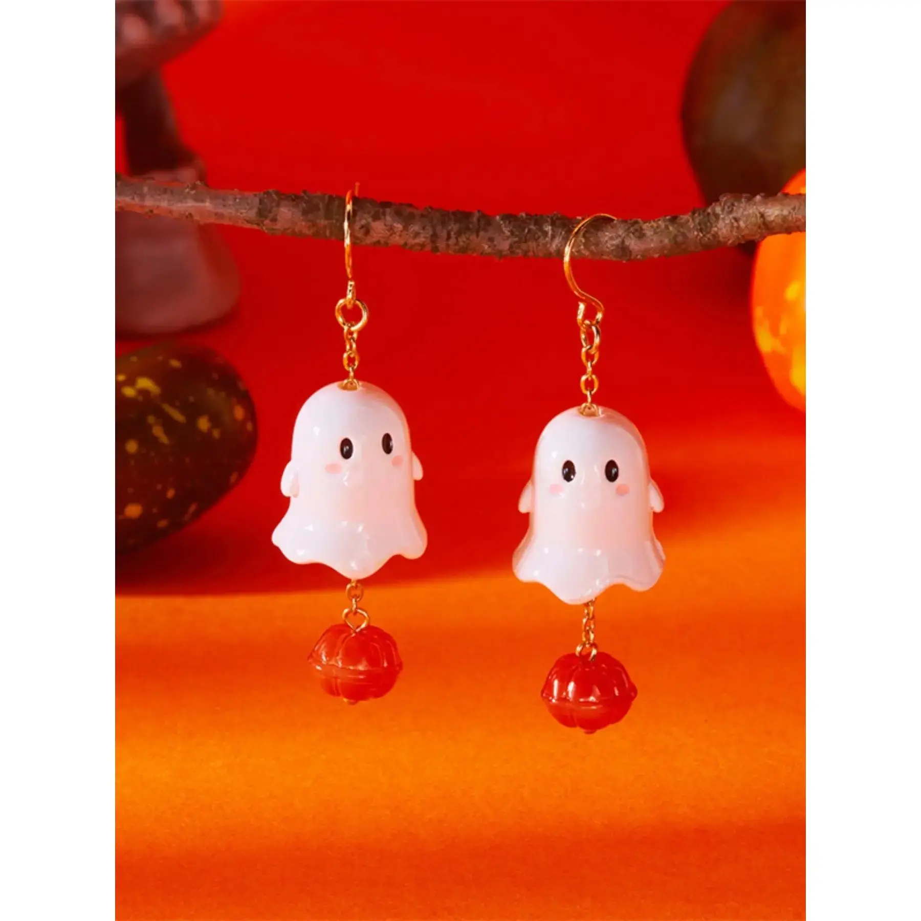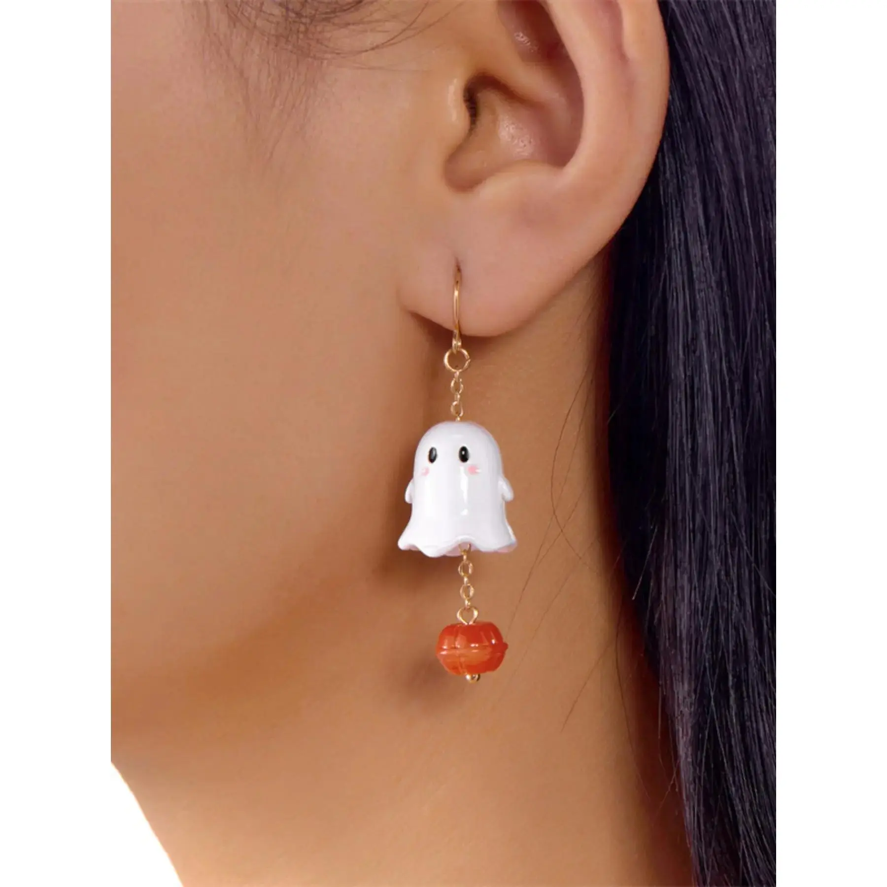 Cute Ghost Pumpkin Earrings, Lightweight Earring, Gothic Style Halloween Ear Pendants, Unique Hanging Design, Perfect for Party