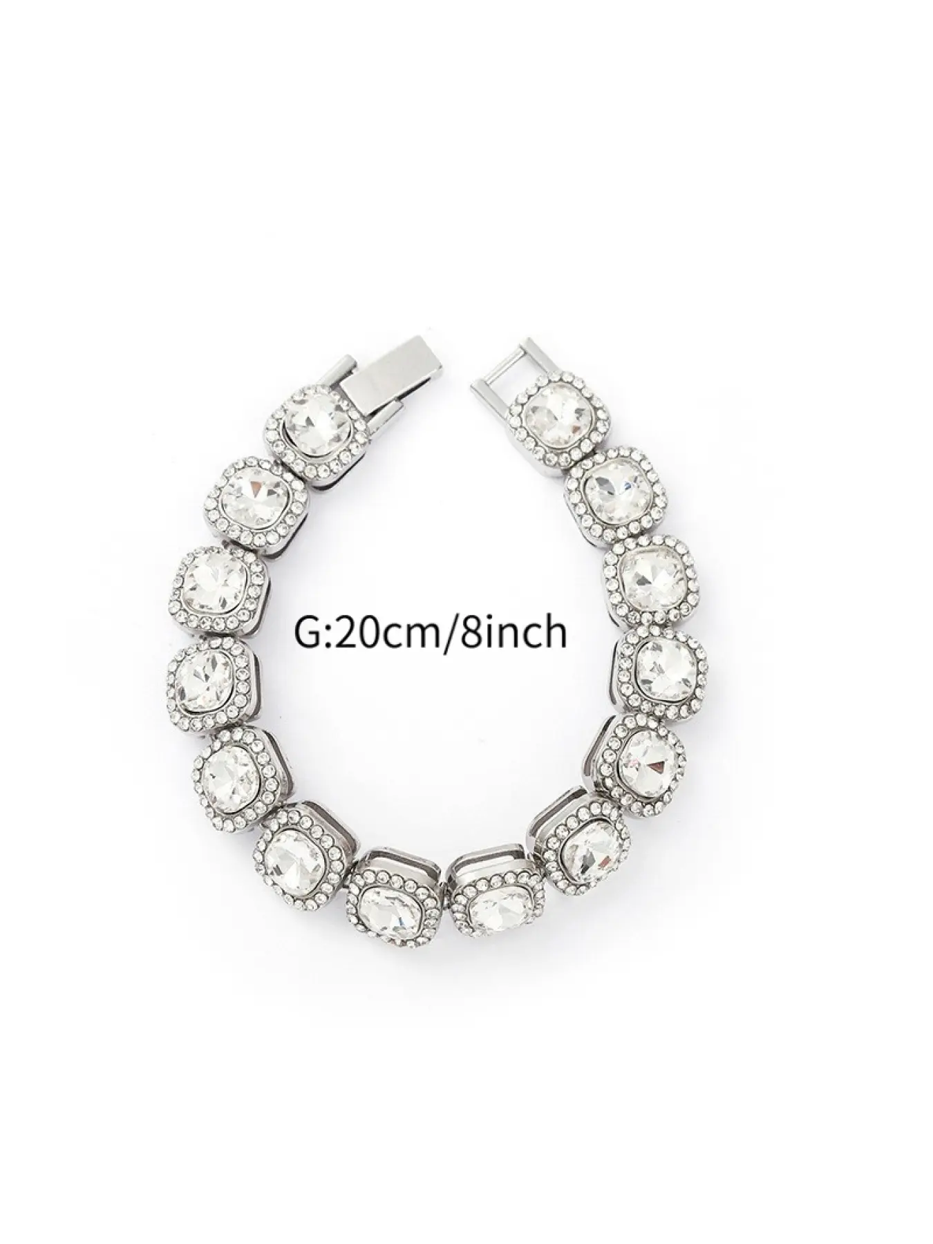Trendy and Unique 12mm Square Versatile Fashion Cuban Necklace Hip-Hop Square Rhinestone Gemstone Necklace Unisex Jewelry