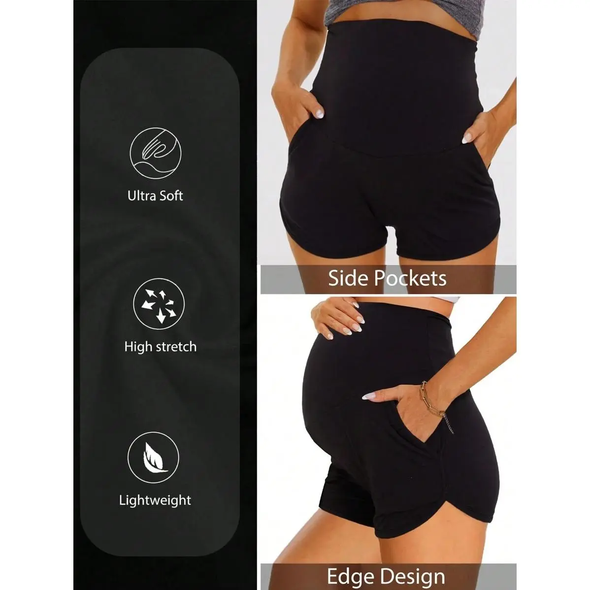 SoftButter Collection: This maternity shorts over the belly is crafted from blend of 92% polyester and 8% spandex, offer a buttery soft feel with ample stretch.The waistband is designed to be comfortable without squeezing as your baby bump grows