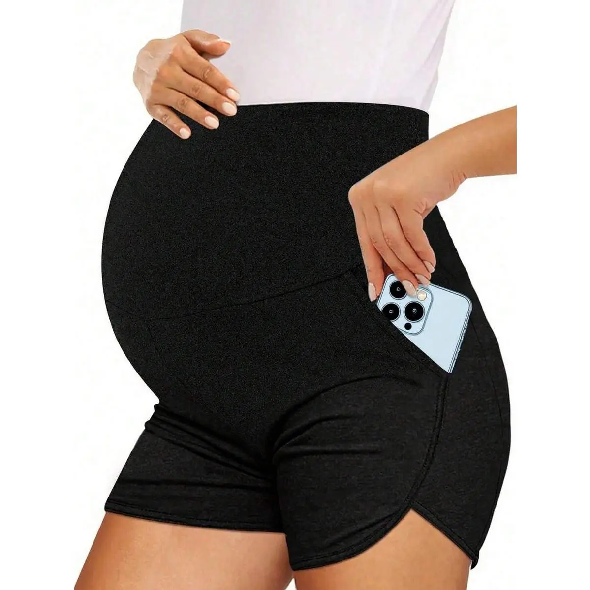 Design Feature: This maternity lounge shorts featuring a tailored fit, unique slit design, and charming smile-edge hem, suitable for before, during, and after pregnancy.MATERNITY SHORTS OVER THE BELLY/ BIKER SHORTS/ YOGA SHORTS/ MATERNITY WORKOUT SHORTS