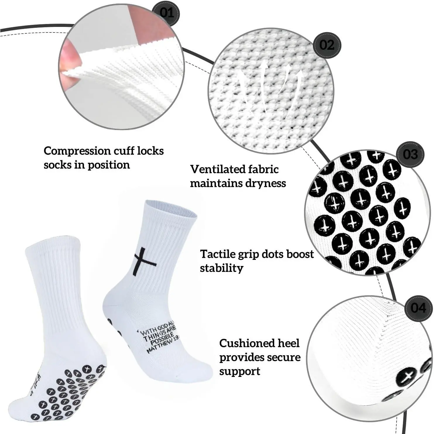Cross Grip Soccer Socks - Anti-Slip Grips Sports Sock with Bible for US 6-13