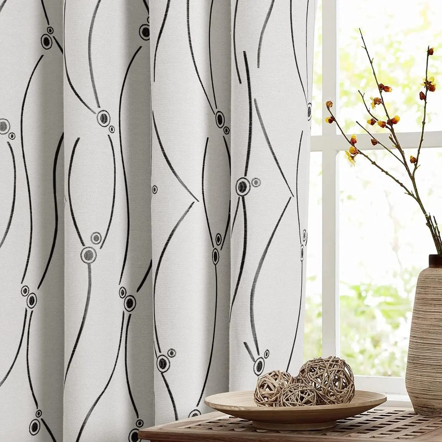 Wave lines and dots design: Flowing lines and dots are embroidered on the cream to beige curtains, which enhances the artistic decorative effect of the curtains and makes the curtains more attractive.Bring each room cozy and comfortable vibe.Perfect to be used as living room curtains, bedroom curtains, dining room curtains, nursery room curtains, office and kids' room curtains, modern farmhouse, rustic country and so on