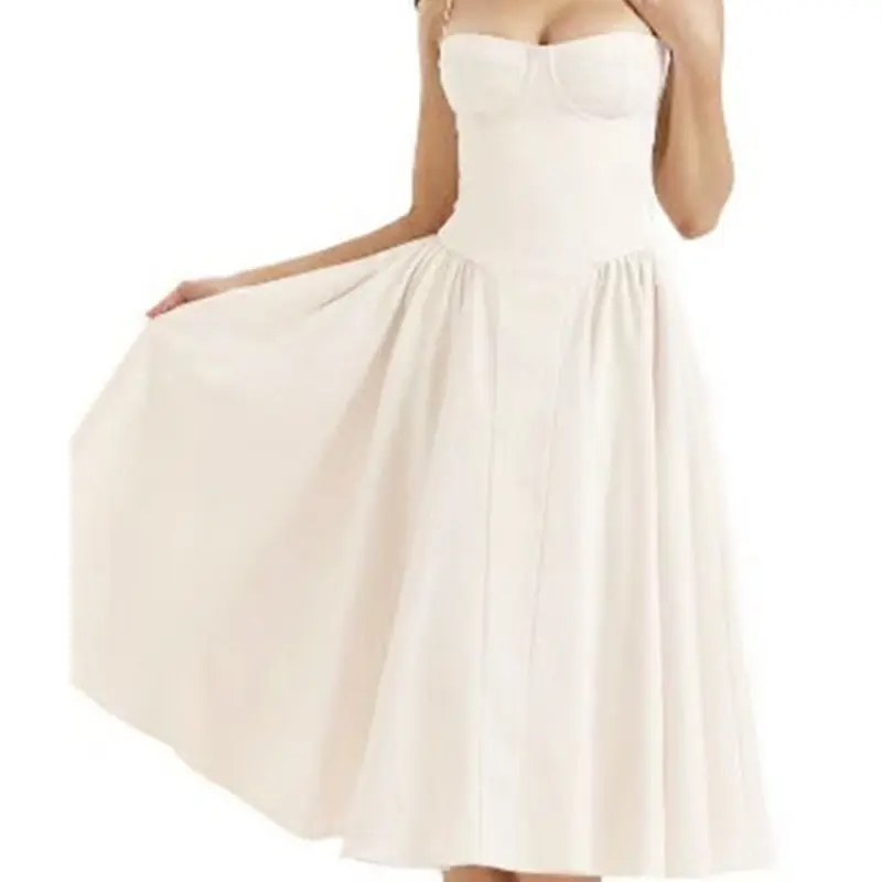 Summer 2026, European And American Strapless Dresses, New Waist-Cinching Fashionable And Sexy Slip Dresses