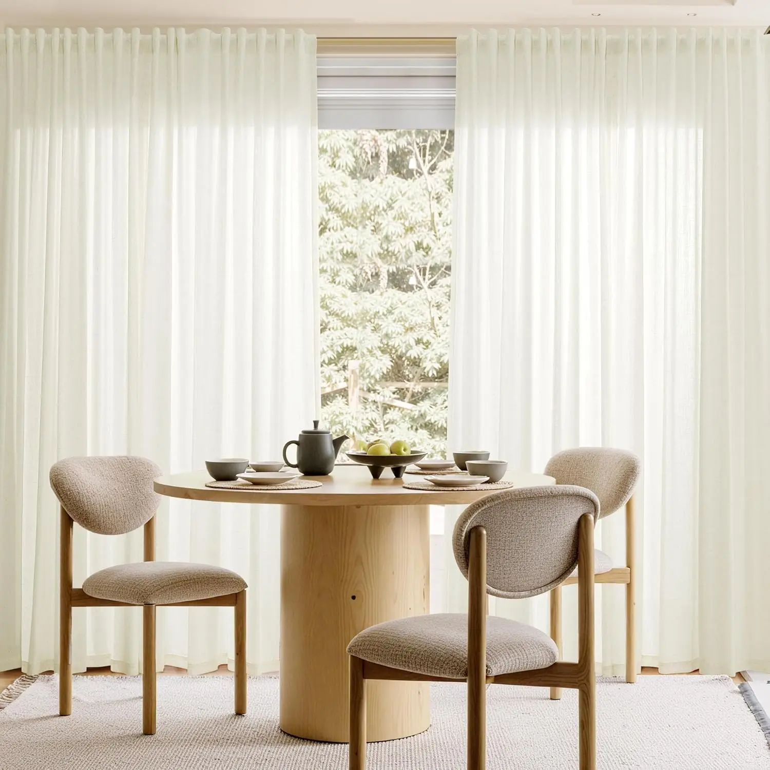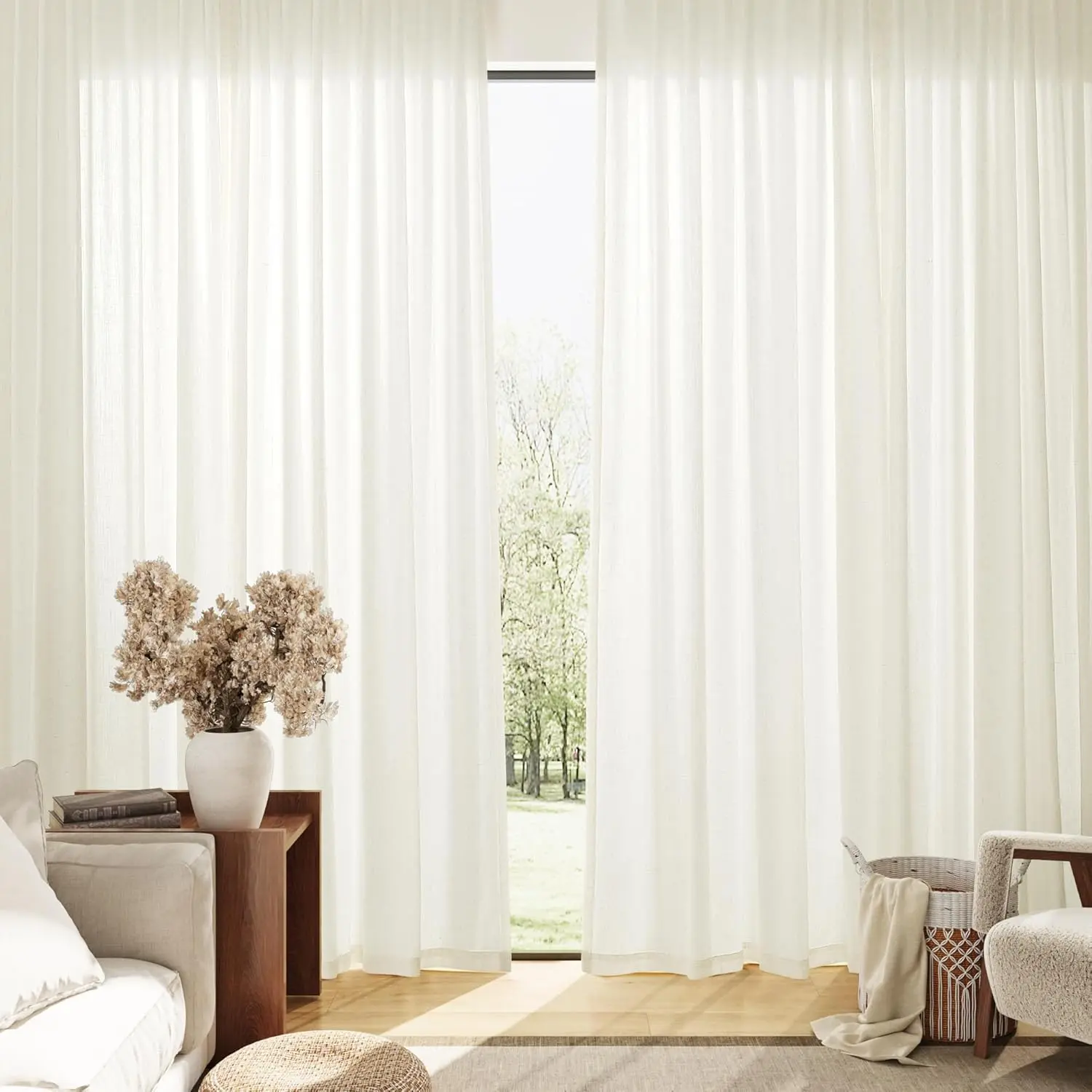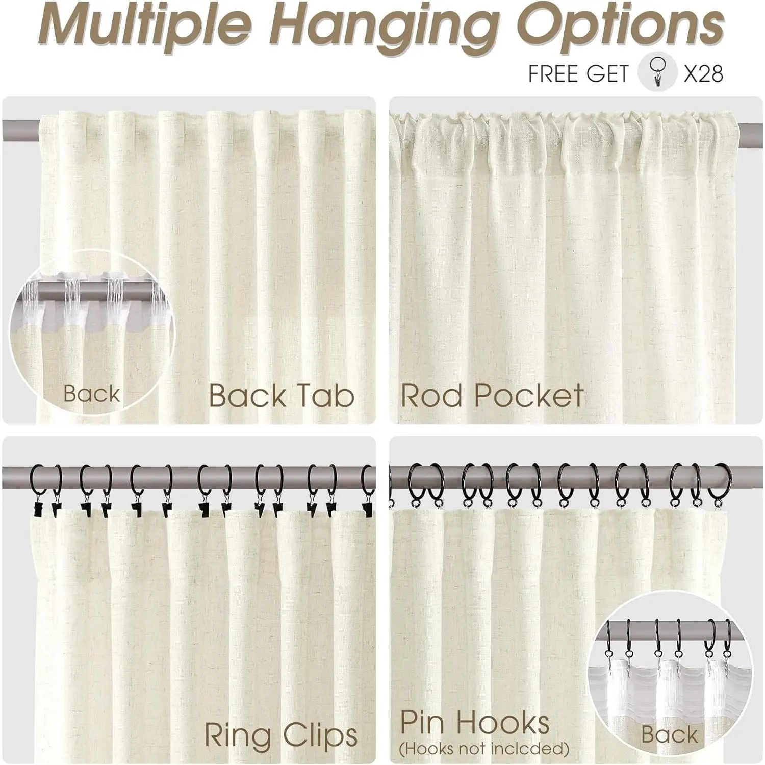 Warm Beige Linen Curtains 84 Inches Long Back Tab for Living Room 2 Panels Modern Farmhouse Set Hook Belt Linen Curtain Sheer Light Filtering Privacy Elegant Window Drapes for Dining Room 52x84
