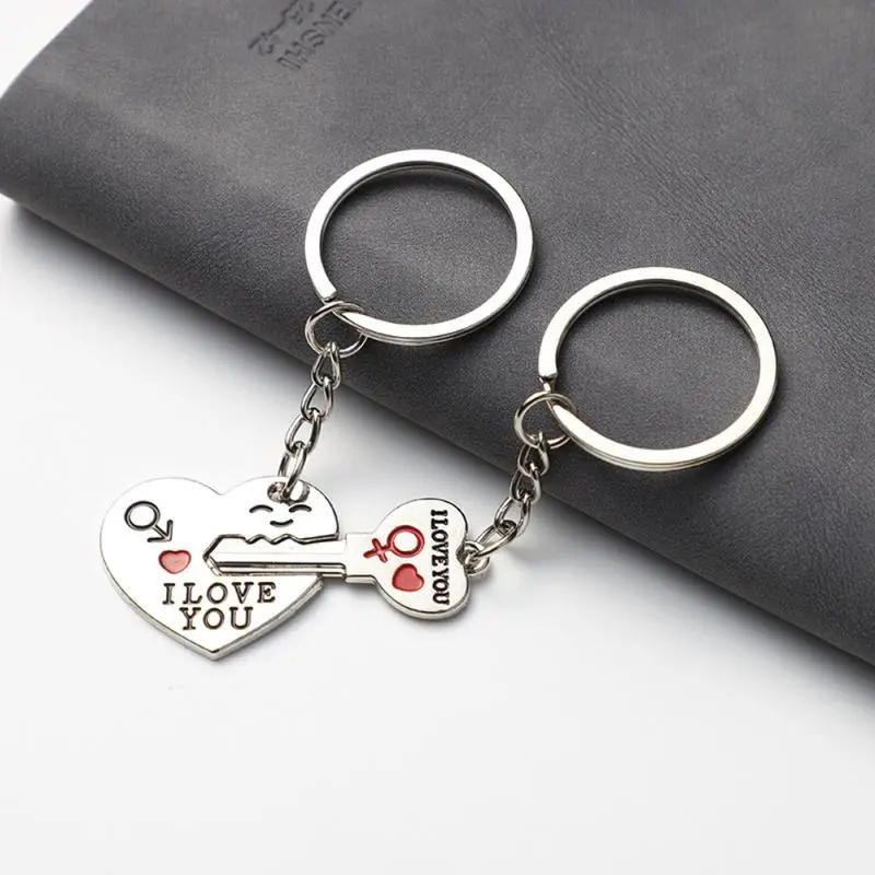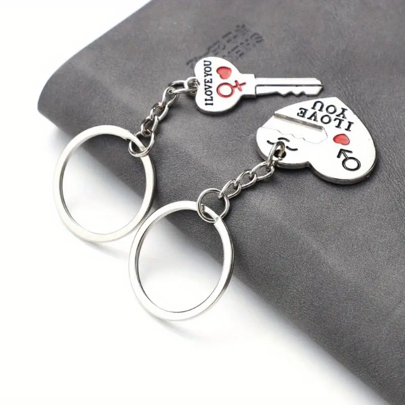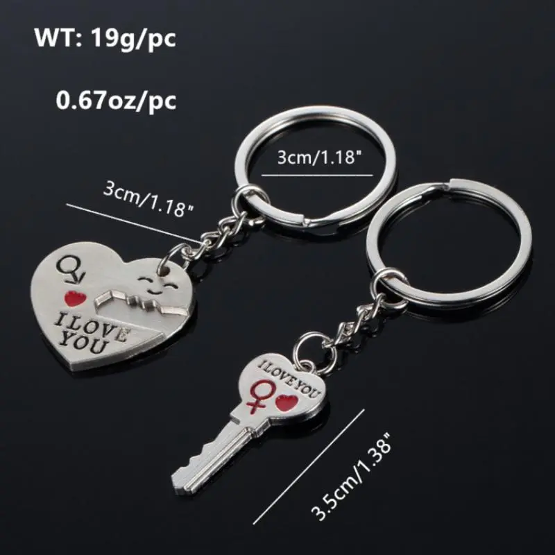 2pc Set Men Women Cute Heart Key Keychain Couple Key Ring Lovers Key Chain Jewelry Accessory Gift