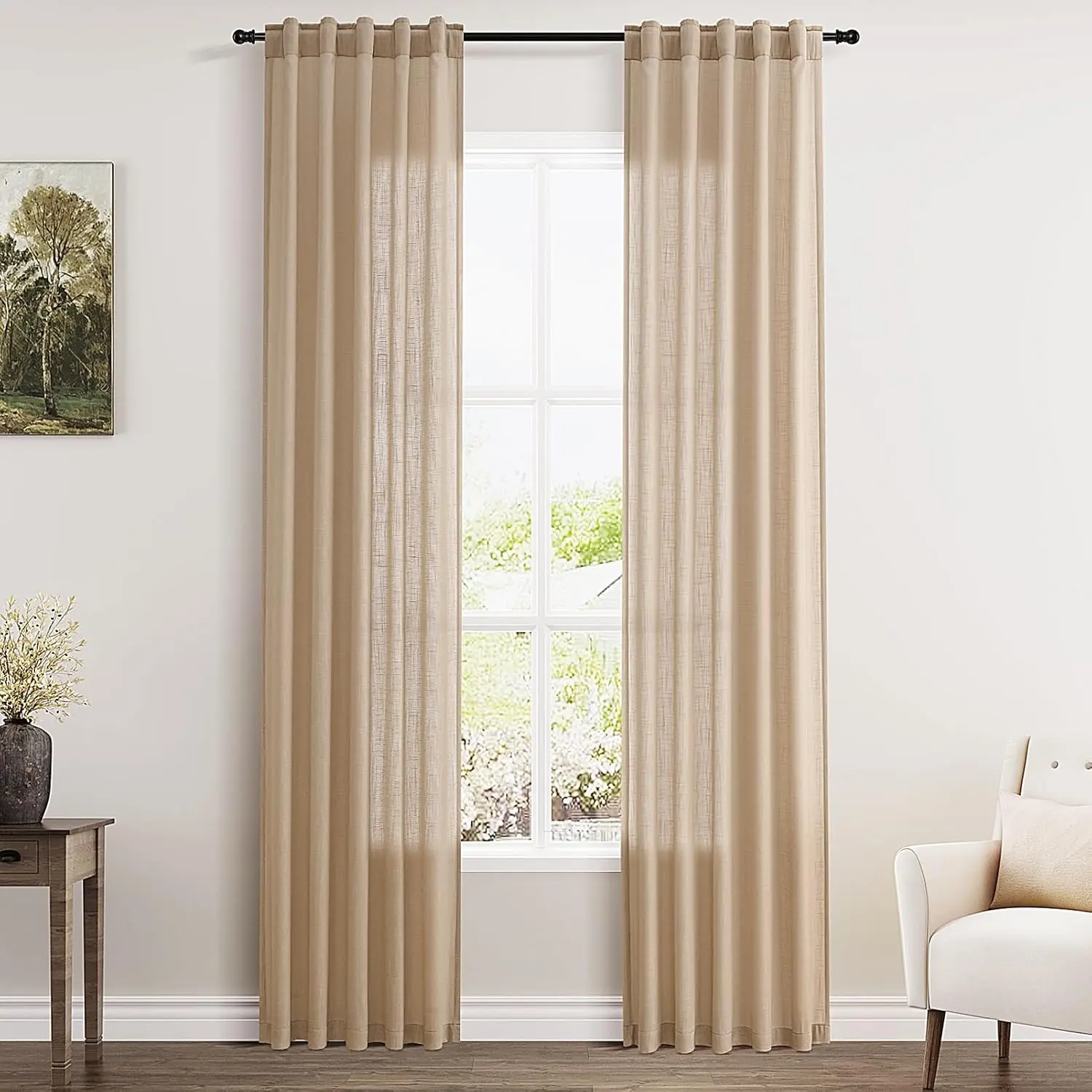 Tan Linen Blend Drapes 84 Inch Length 2 Panels Set Back Tab Rod Pocket Light Filtering Privacy Semi Sheer Textured Curtains Neutral Farmhouse Decor Curtains for Living Room Bedroom 40x84