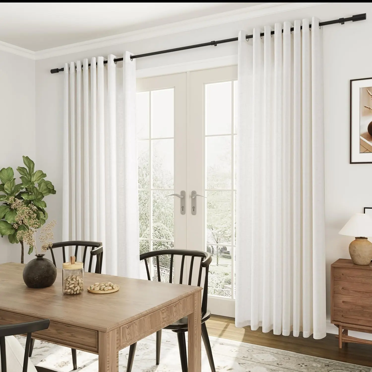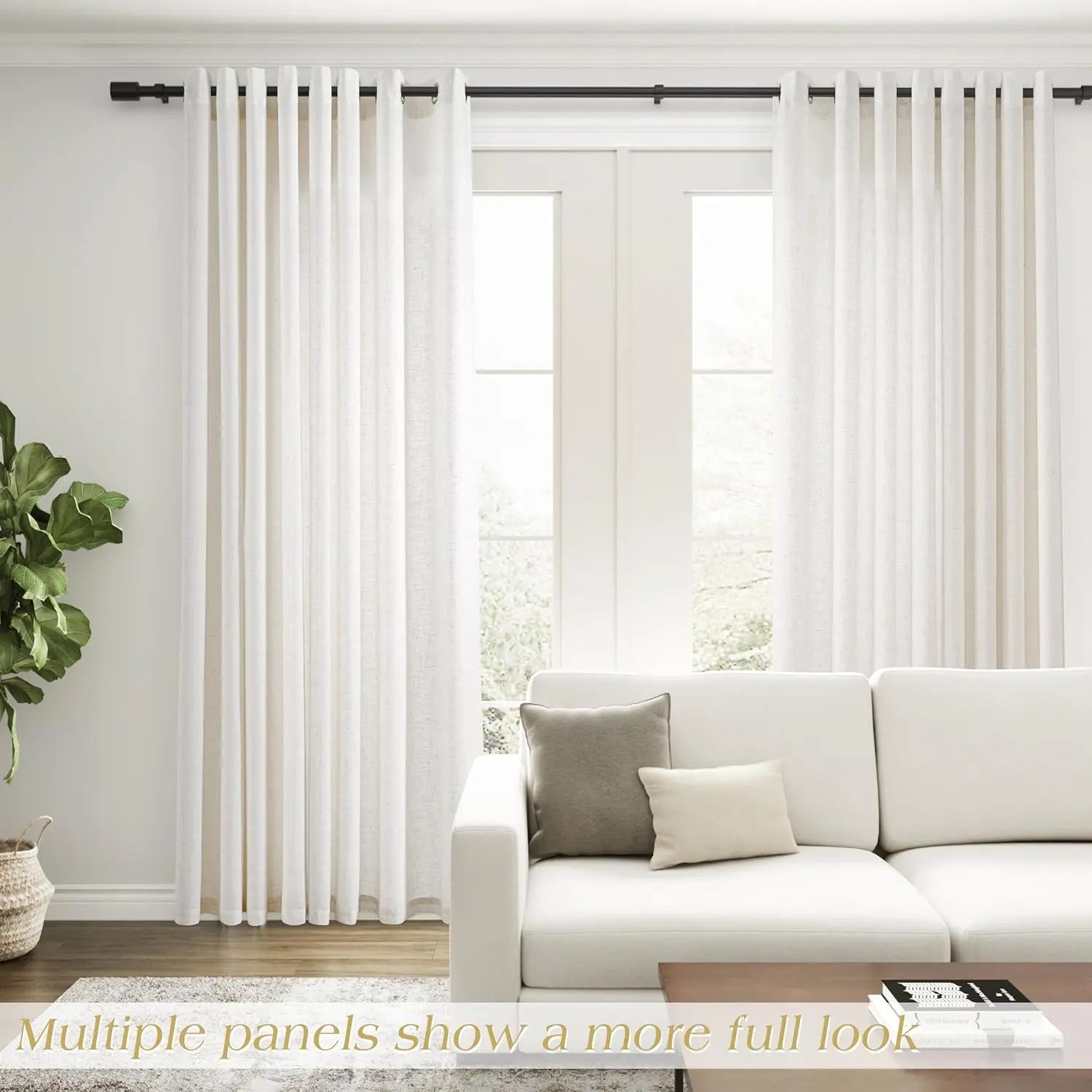 Extra Wide 100 inch Linen Curtains for Living Room Divider Light Filtering Semi Sheer Patio Curtain for Sliding Door Natural Coastal Decor Sunroom Floor to Ceiling Window Drapes Panels 100" Wide