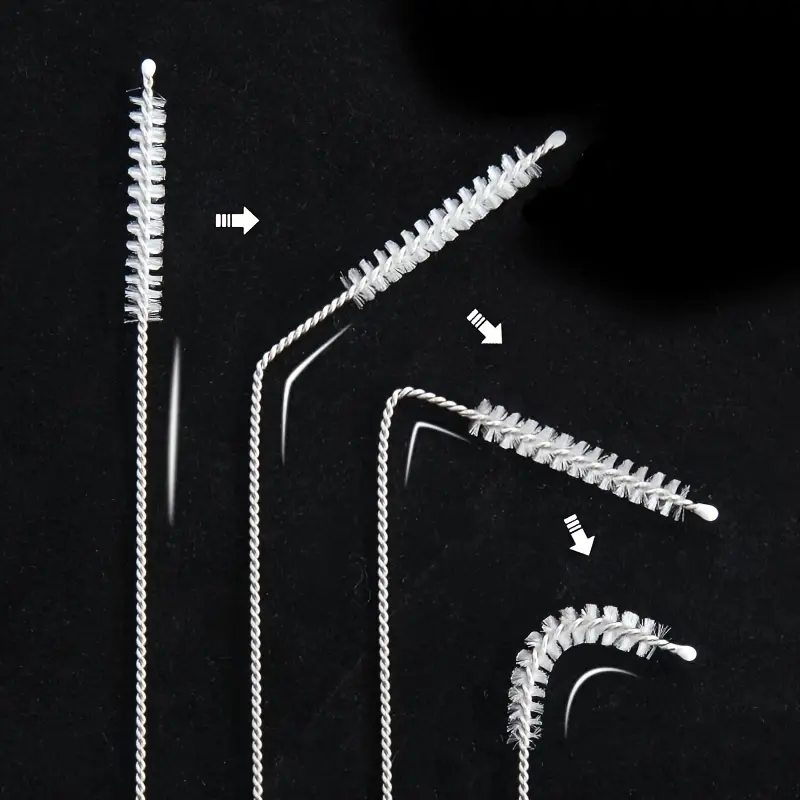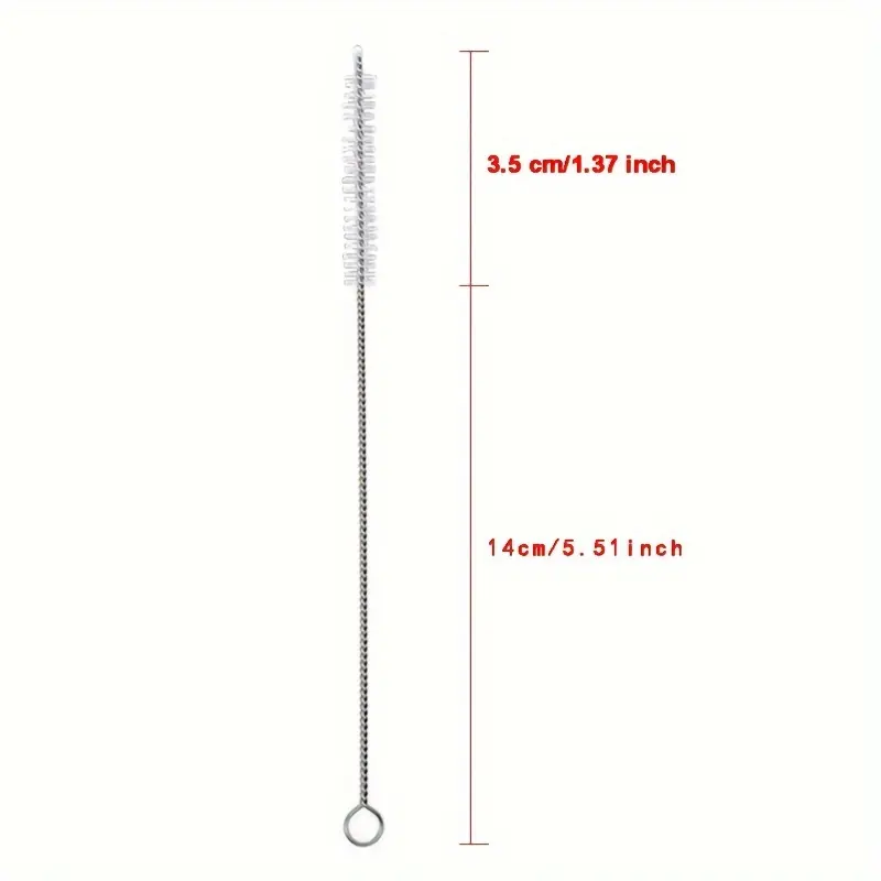 Description: These straws are reusable; they can be cleaned thoroughly, including hard-to-reach areas like funnel necks, tubes, or cylinders. Most importantly, the brush is also ideal for cleaning sports and thermos bottles! Feature: Length: approximately 17.5CM Material: Stainless steel Color: silver