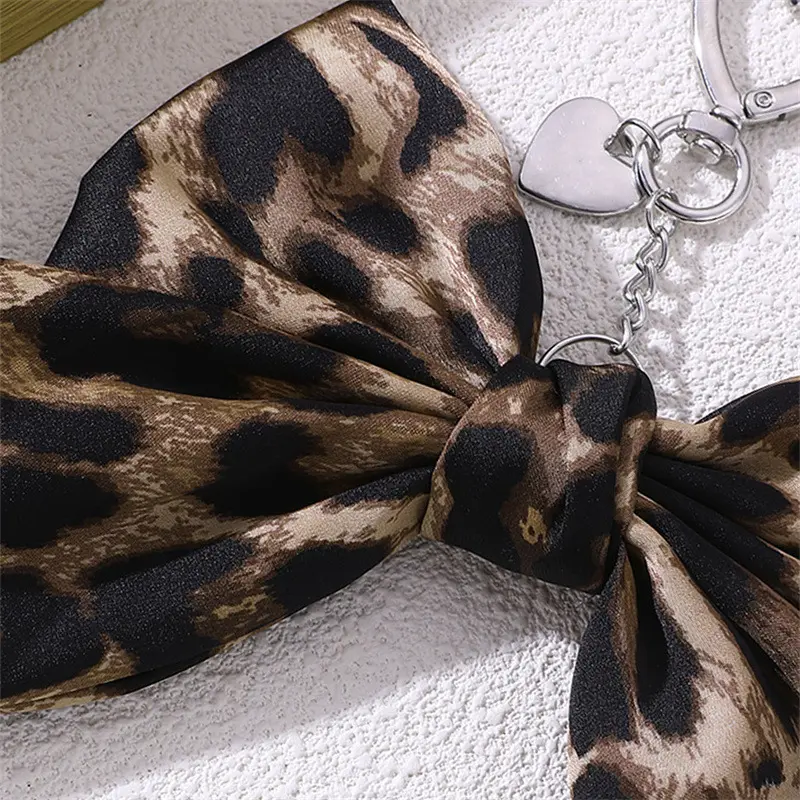 Dark Tone Leopard Bow Heart Set | Keychain Bag Clip & Hair Accessories