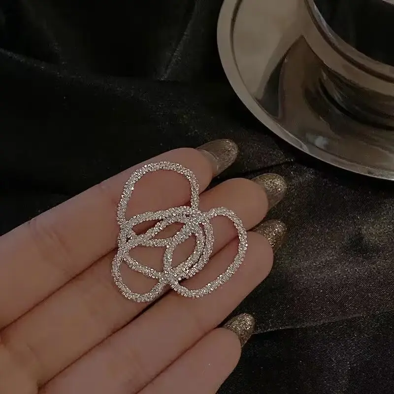 Fashionable and trendy Korean sparkling silver ring for women, starry sky ring, new niche plain ring, ins-style party index finger ring, gift