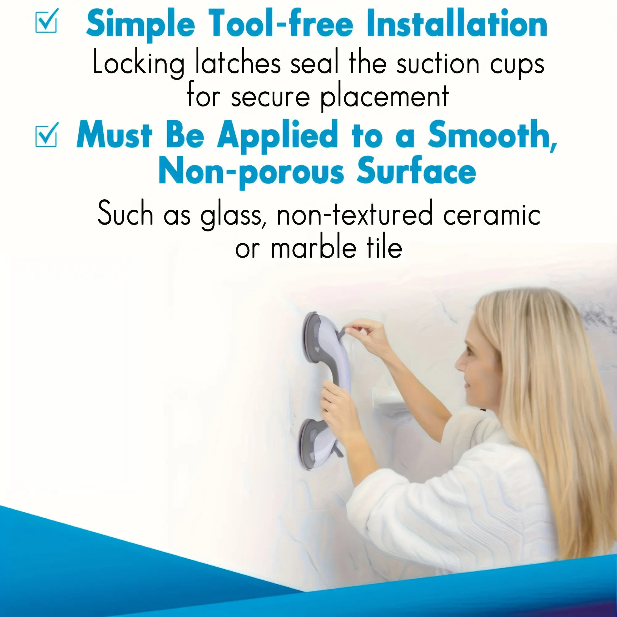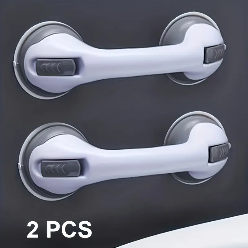 2pcs Bathroom Grab Bars Suction Cup - No Drill Shower Handles for Elderly, Adjustable Height Non-Slip Safety Rail, Toilet Fall Prevention Handrail (Easy Install)