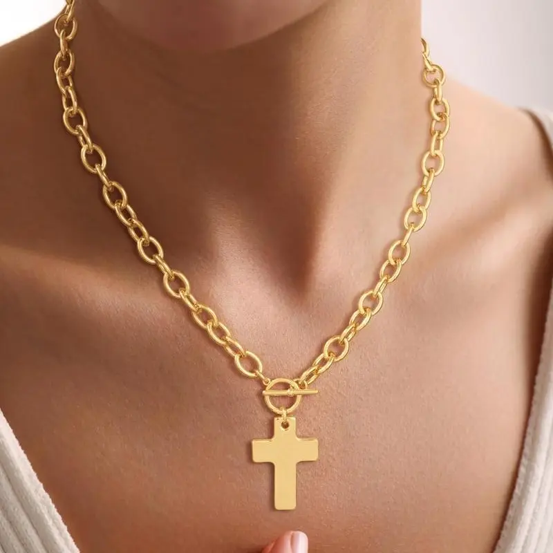 ·Statement Cross Pendant: This necklace boasts a bold, chunky cross pendant that makes a statement. Ideal for those who love a standout piece. The cross is a focal point, adding a touch of elegance to any outfit.