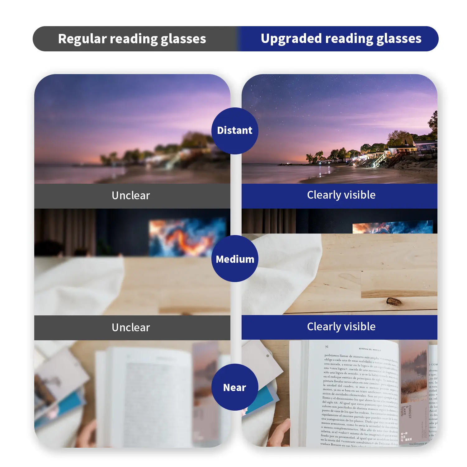 These upgraded multi-focus lenses automatically adjust based on your viewing distance — whether you're: