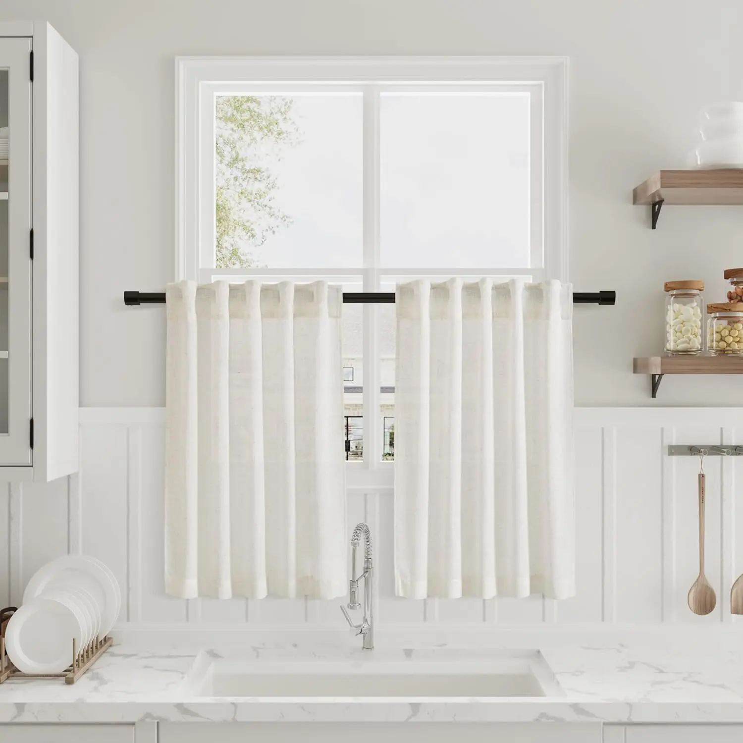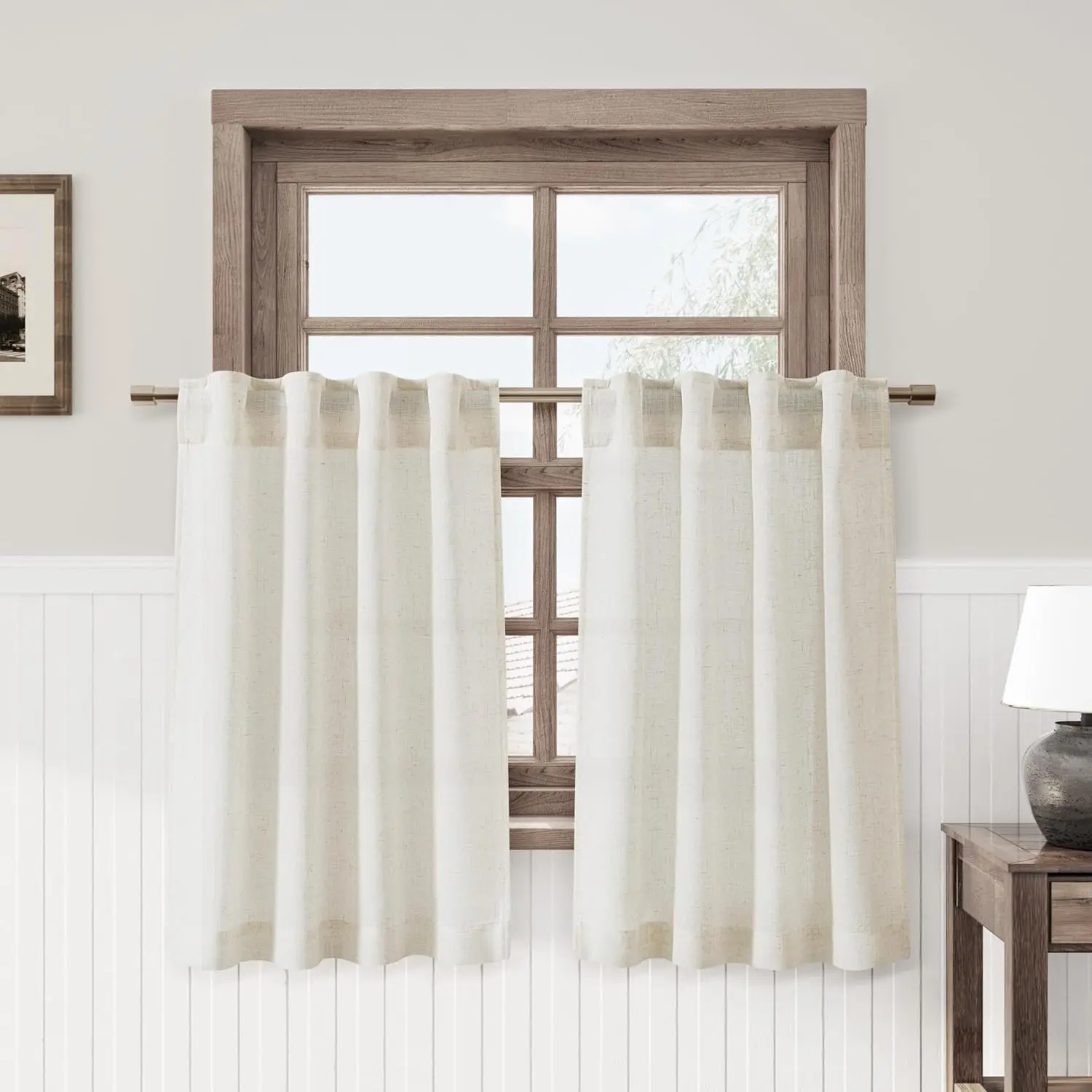 Linen Cafe Curtains 30 Inch Length Light Filtering Semi Sheer Mini Curtains for Small Window Basement Bathroom Natural Back Tab Rod Pocket Pleated Short Sheer Kitchen Curtain 30x30 CreamLinen Cafe Curtains 30 Inch Length Light Filtering Semi Sheer Mini Curtains for Small Window Basement Bathroom Natural Back Tab Rod Pocket Pleated Short Sheer Kitchen Curtain 30x30 Cream
