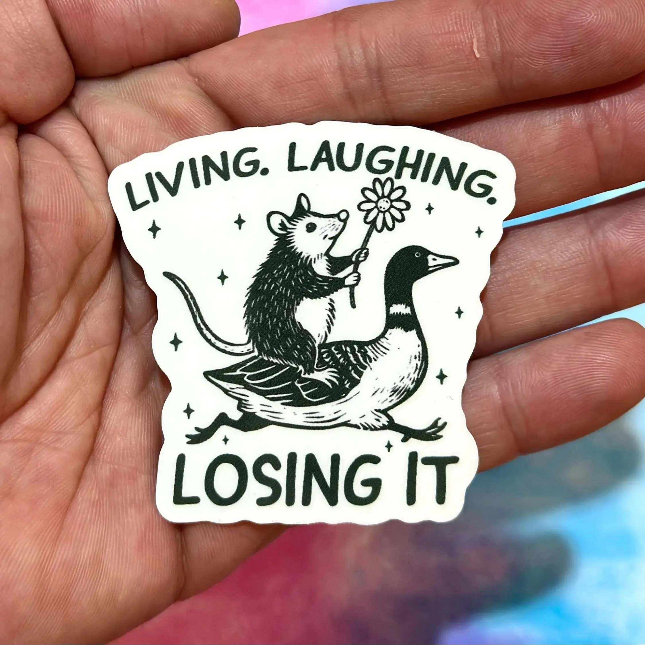 Funny Opossum Sticker  “Living Laughing Losing It” Meme, Cute Snarky Animal Laptop & Planner Decal