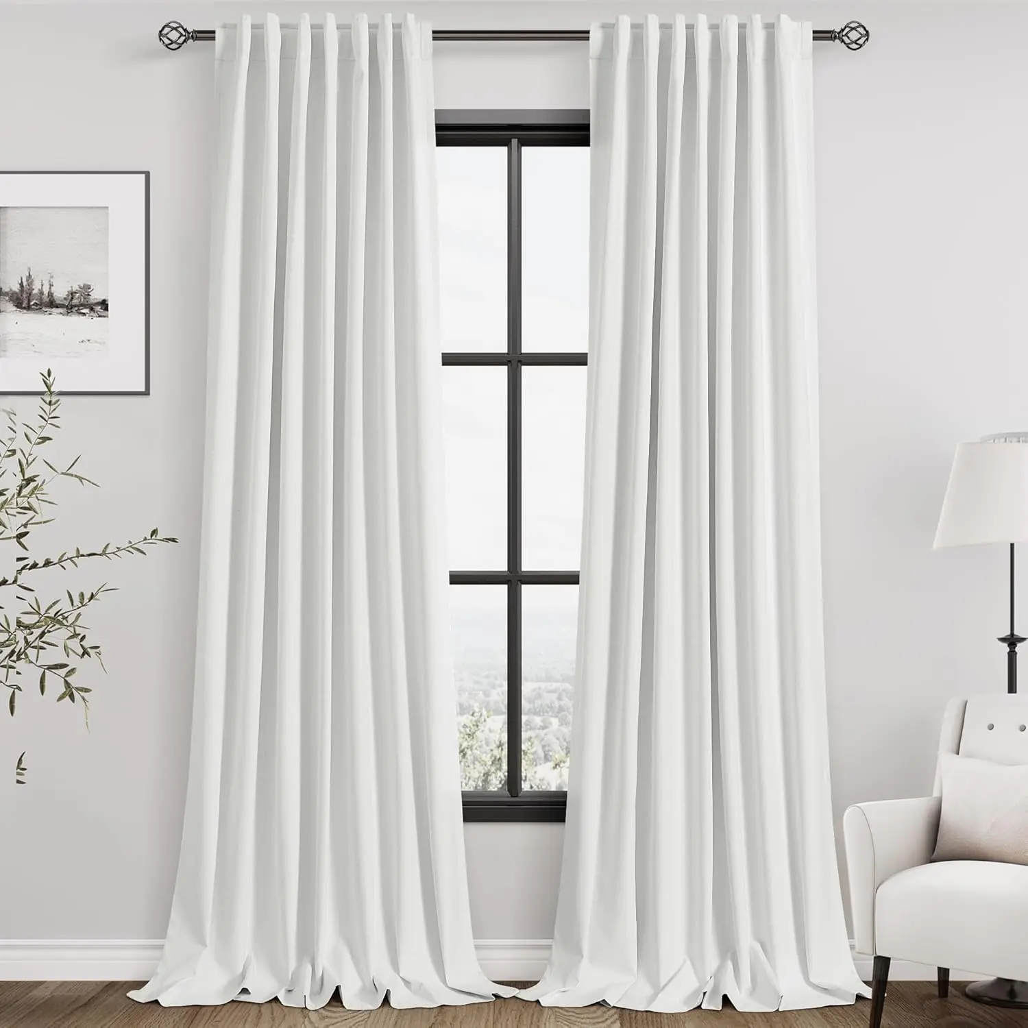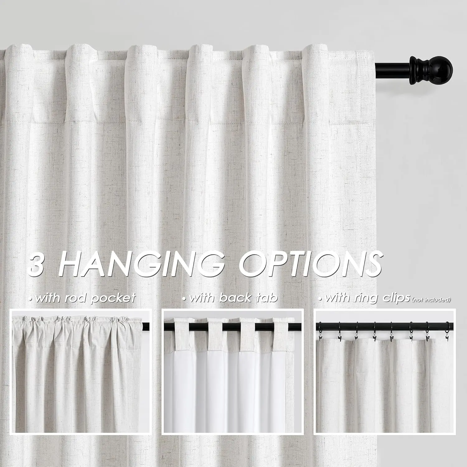 Hanging the blackout linen curtain panels from the back tabs for an elegant pleated style, use the rod pocket to create a more casual gathered look and use clip rings for easy slide open and closed (clip rings are not included)