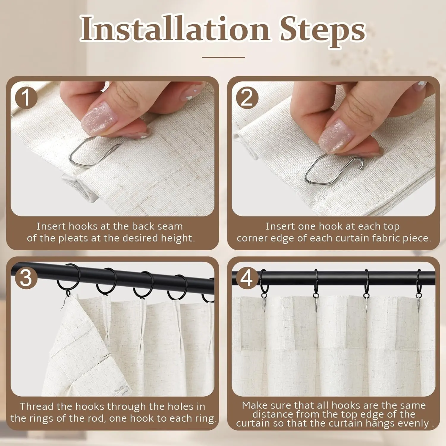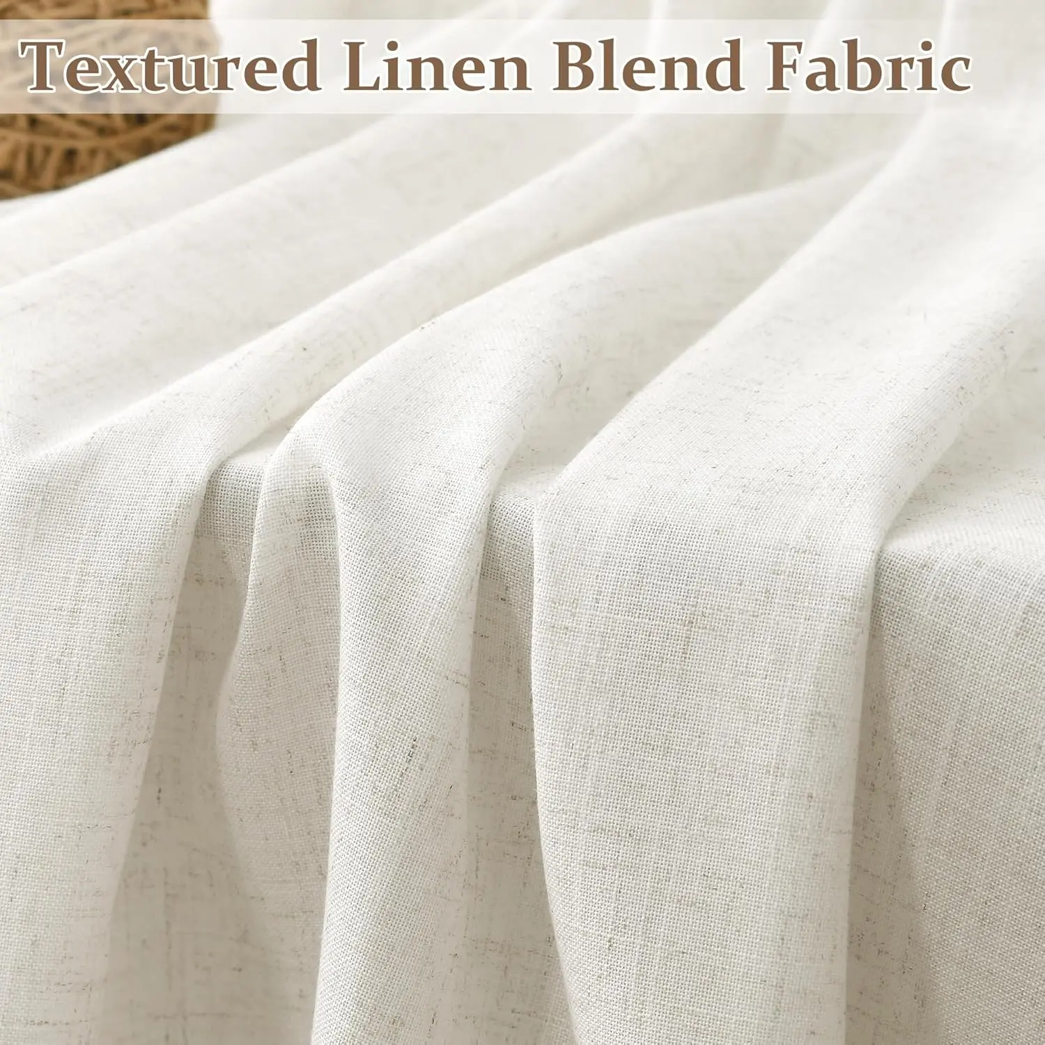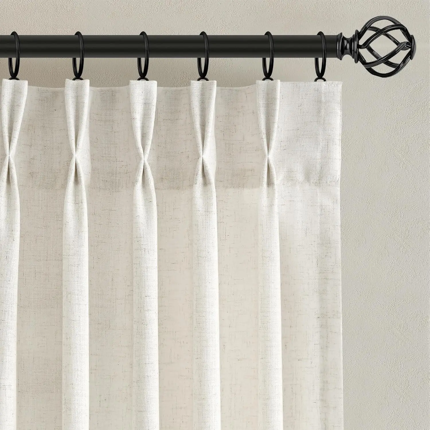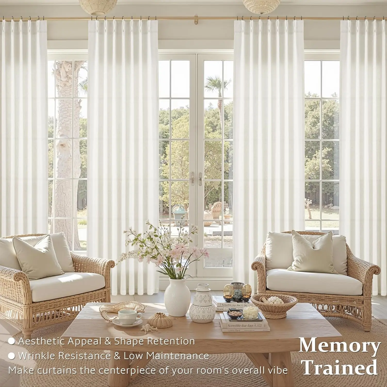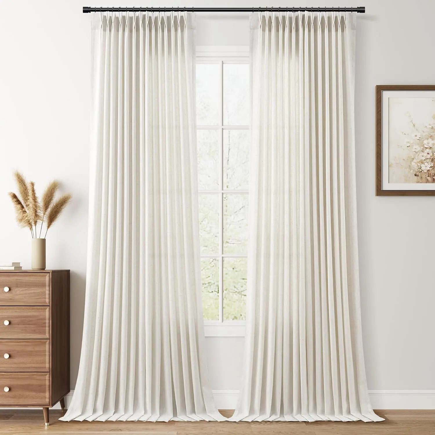 Pinch Pleated Linen Curtains 96 Inches Long for Living Room Semi Sheer Curtain 2 Panels for Bedroom Natural Cream Light Filtering Back Tab Drape with Hook Rings Boho Rustic Farmhouse Decor