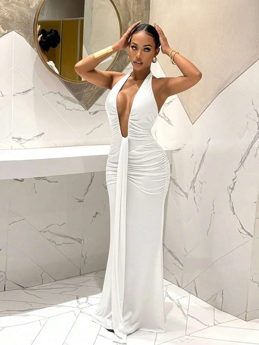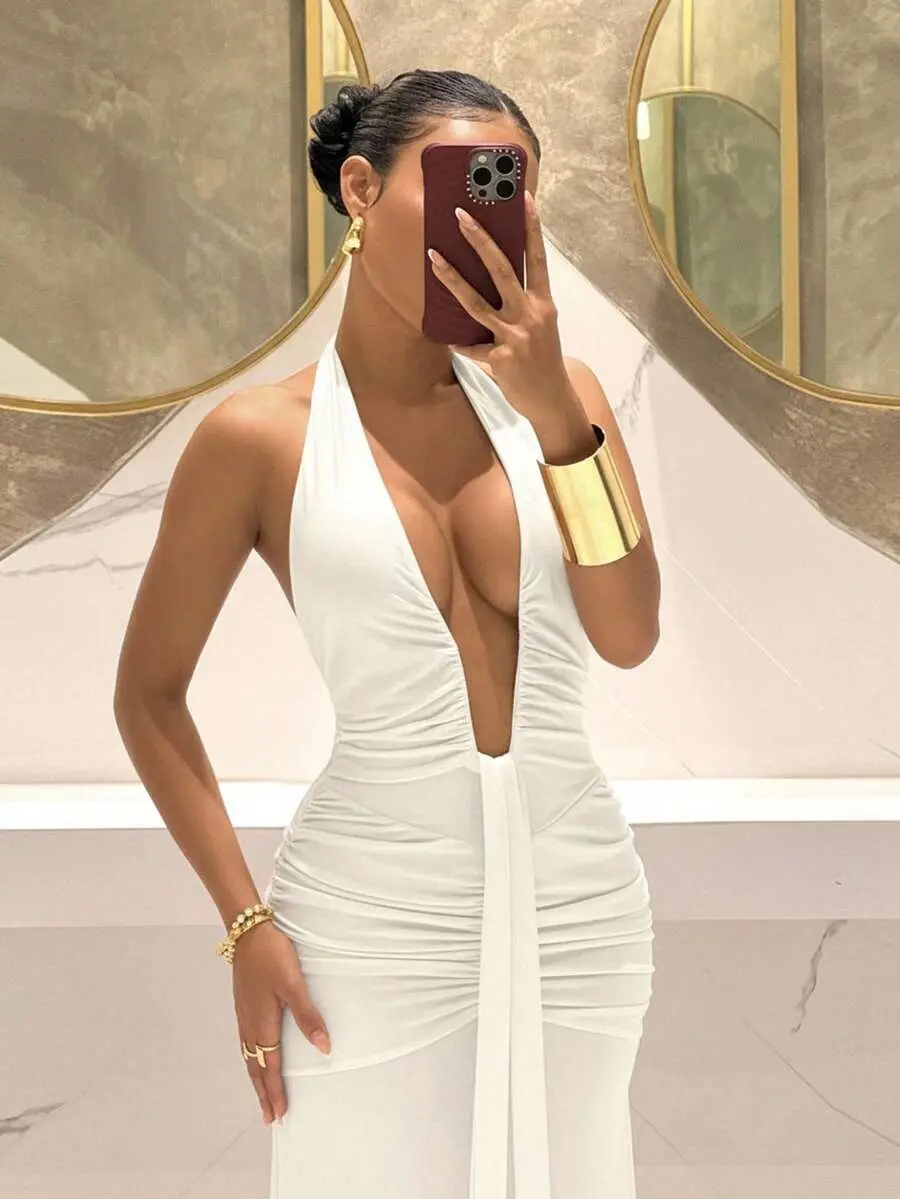 2025 New Elegant Deep V-Neck Mermaid Dress, Suitable For Party, Birthday, Bar, Nightclub, Valentine's Day, Halloween, Christmas - Brown ,Summer Dress,Spring Dresses For Women