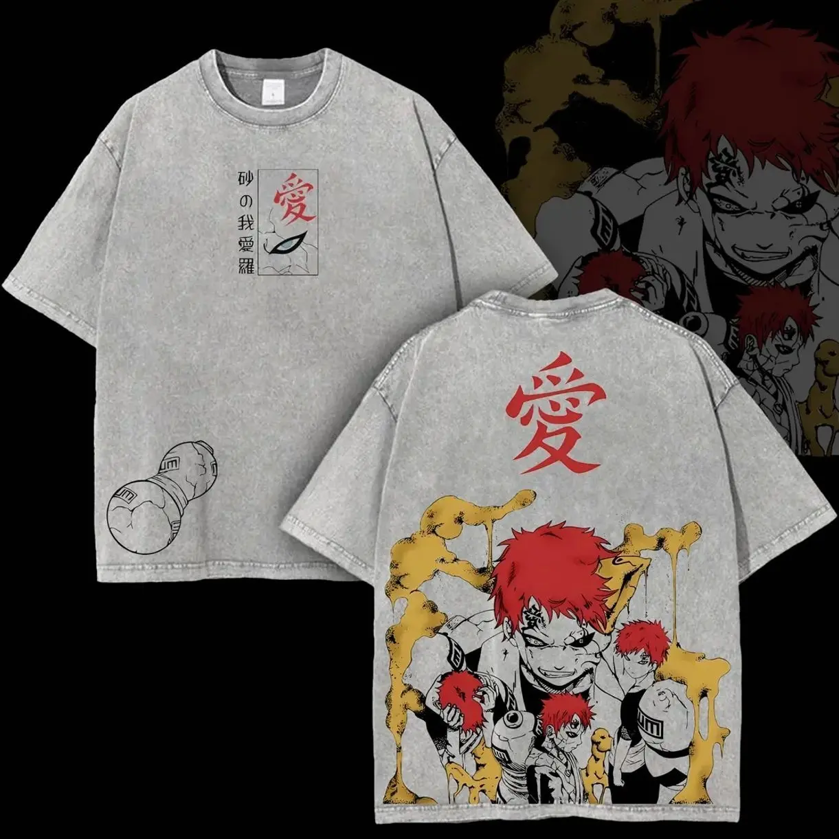 Limited Edition Sunagakure no Gaara - Naruto Shippuden Anime Double Printed Oversize Lightweight Acid Washed Tee, Gift For Anime Fans and Lovers , Naruto Merch , Gaara Fan BP9