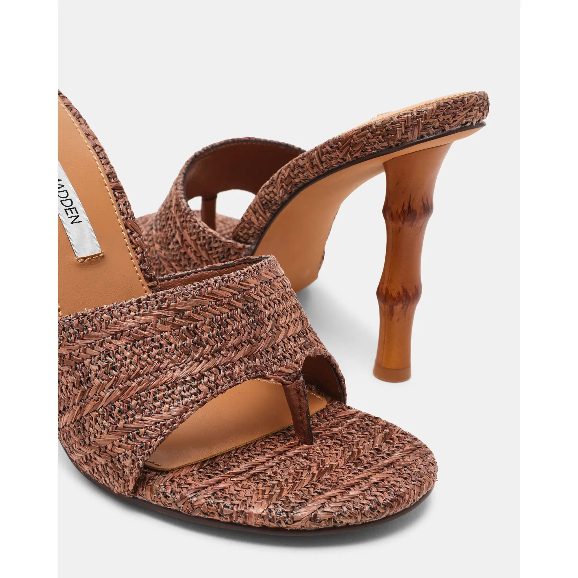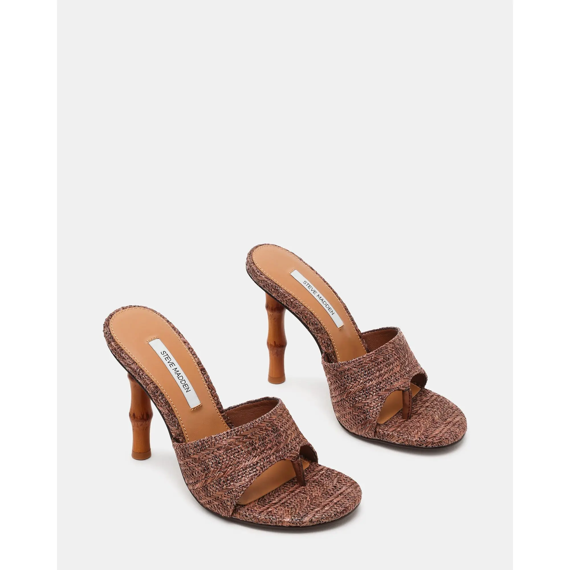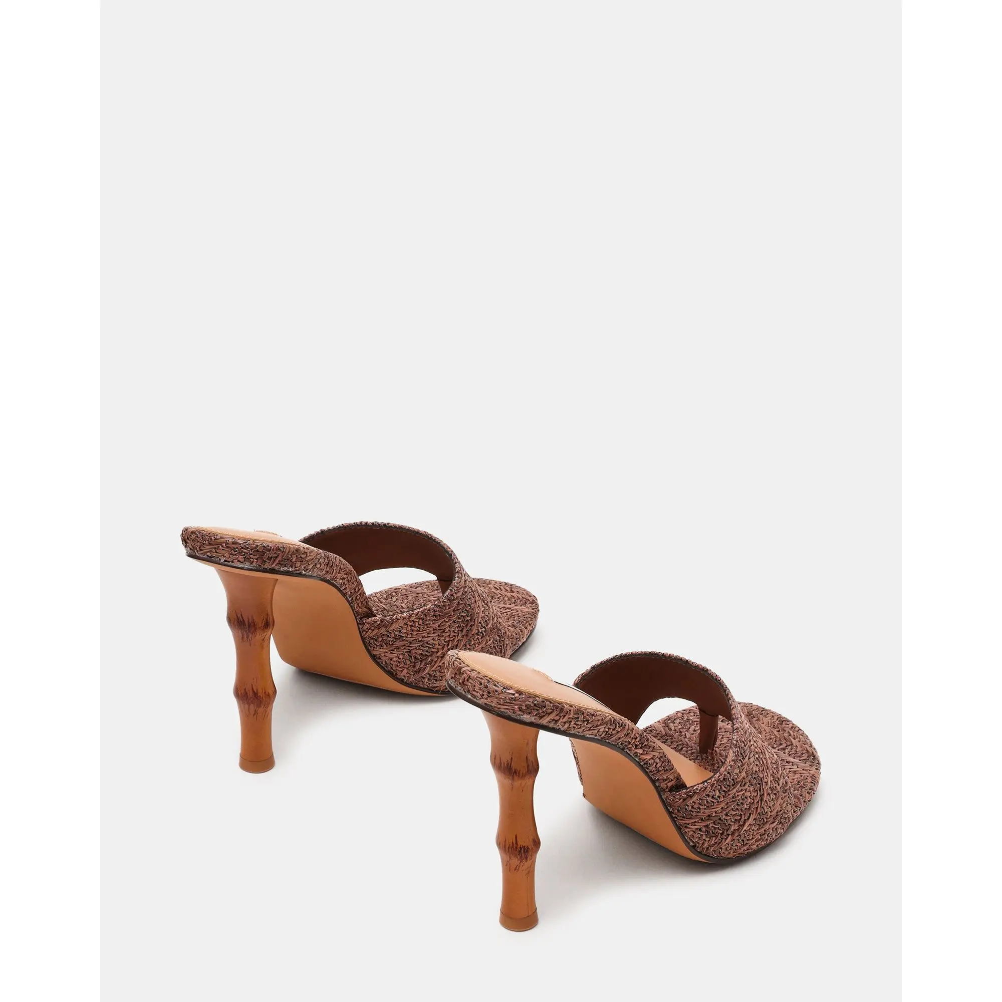 The BRIATA BROWN RAFFIA heel combines minimalist elegance with comfort. Featuring a rounded toe silhouette and a distinctive bamboo-inspired heel, this versatile style transitions seamlessly from day to night. The thong design offers a sleek, open aesthetic, while the sculptural heel adds architectural interest to any outfit. Perfect for those seeking a modern take on a classic heel.