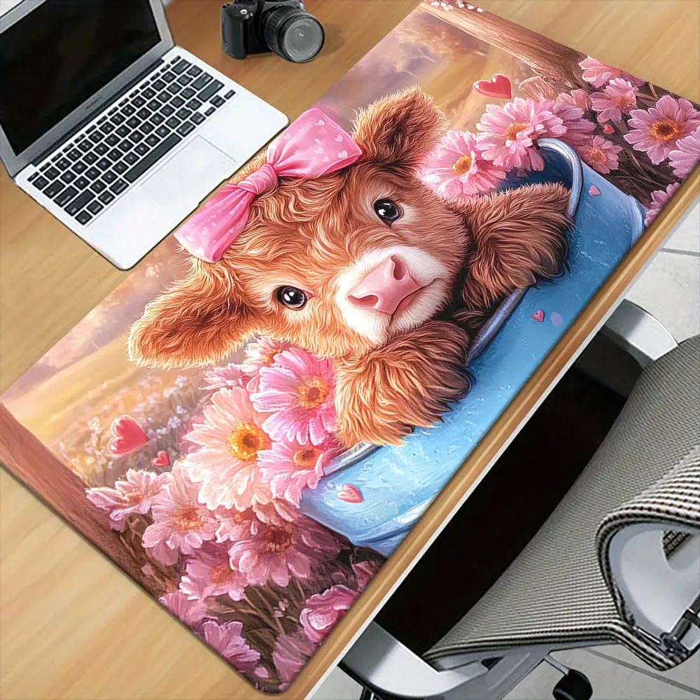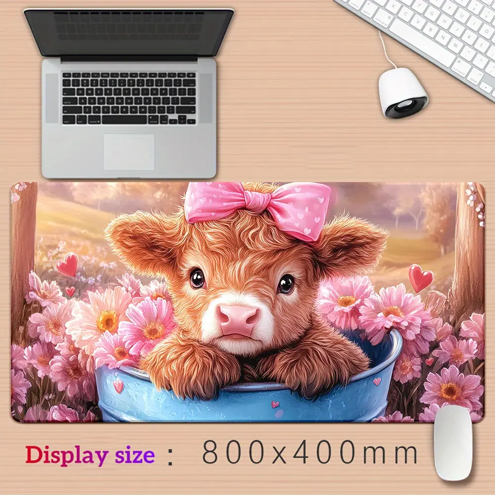 1pc Cute Scottish Highland Cow Desk with Scottish Terrier & Cow Patterns - Non-Slip Rubber Base Gaming & Office Mouse Pad Suitable for PC, Laptop, Computer, Desk - Adorable Scottish Cow Design