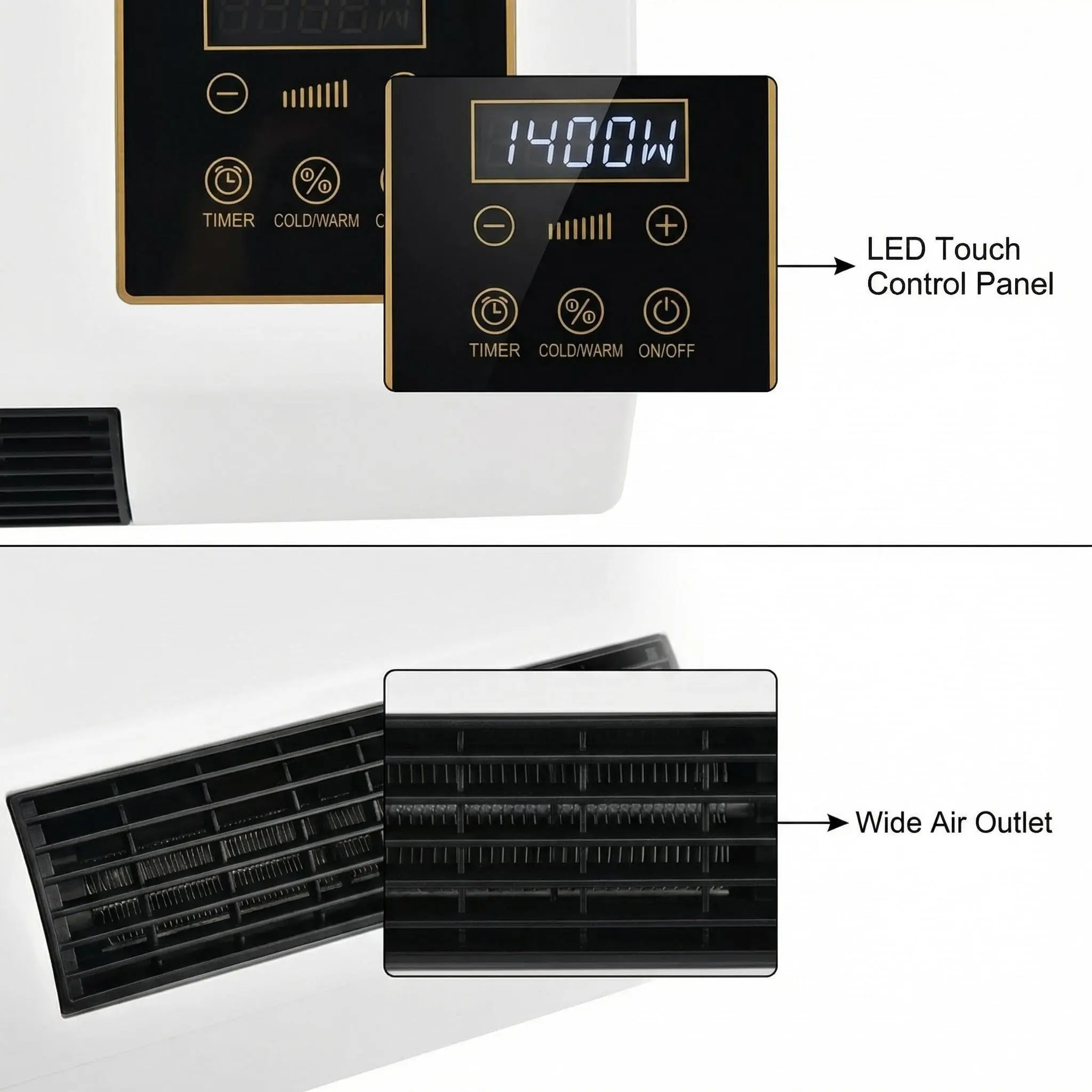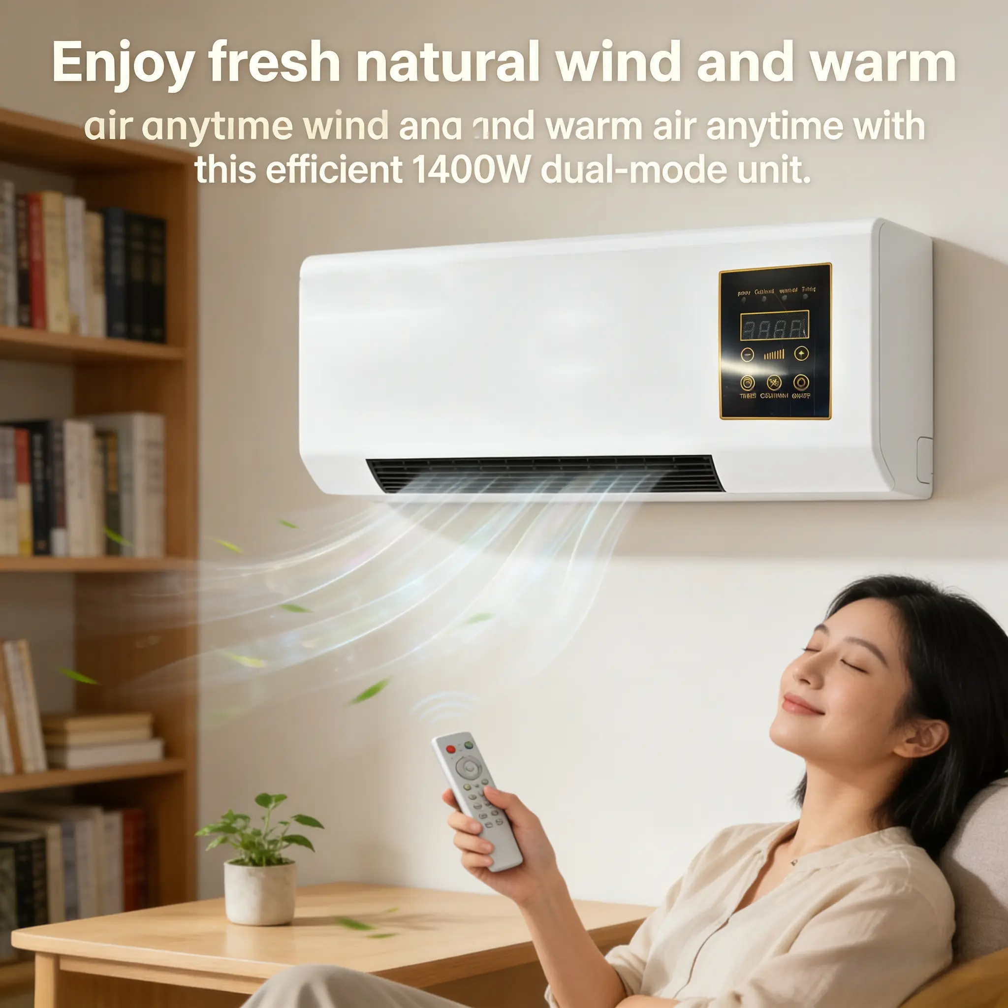 Wall Mounted Dual Mode Fan 1400W Natural Breeze Fast Warm Heating For Bedroom Living Room Office