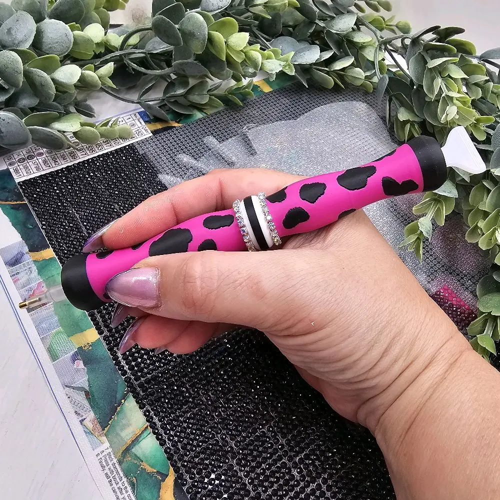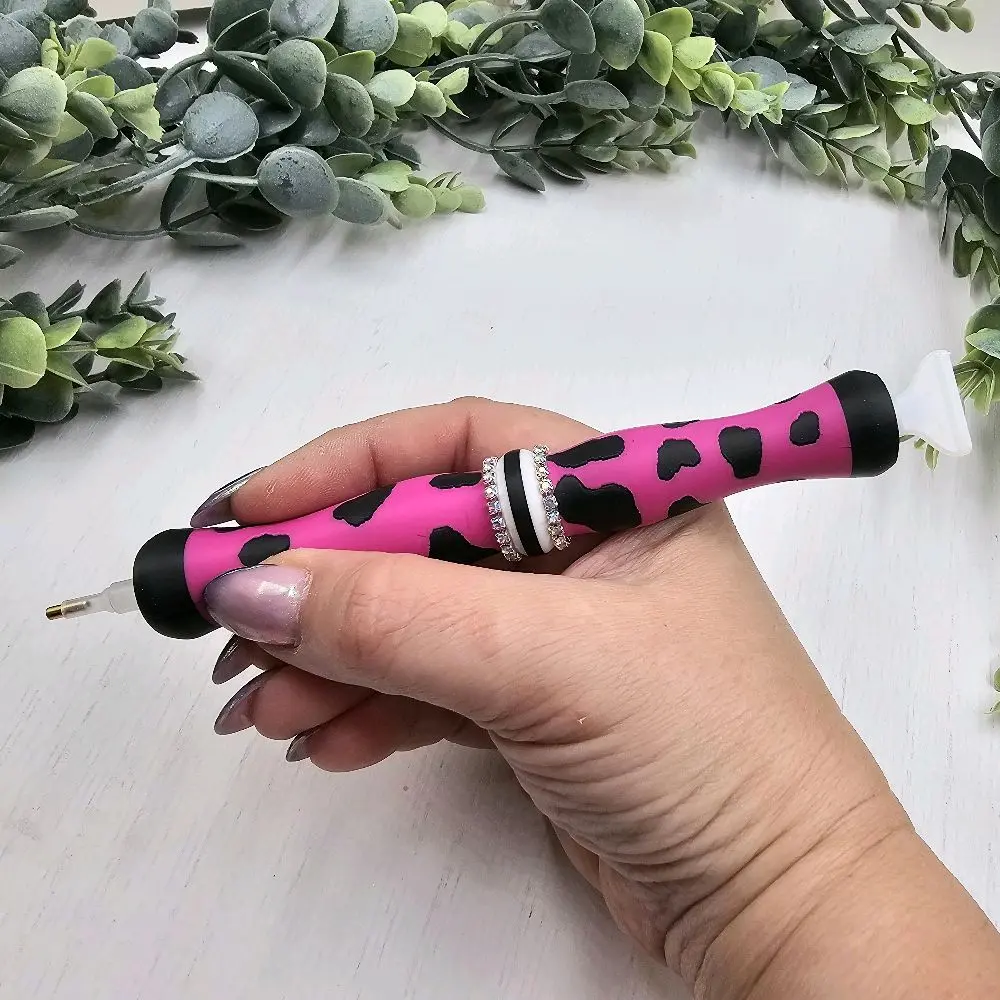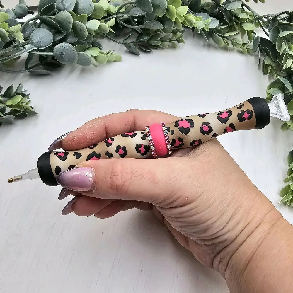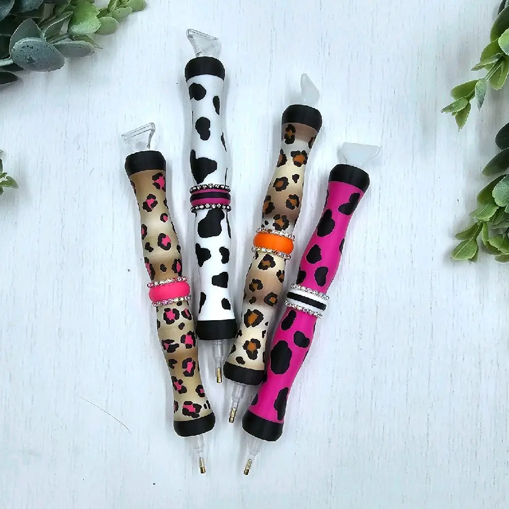 Diamond Art Pen Animal Print Collection 3D Printed Multiplacer Push Tip Dual Ended Replacable Tip Ends Art Tool with Colorful Design & Rhinestone Accent