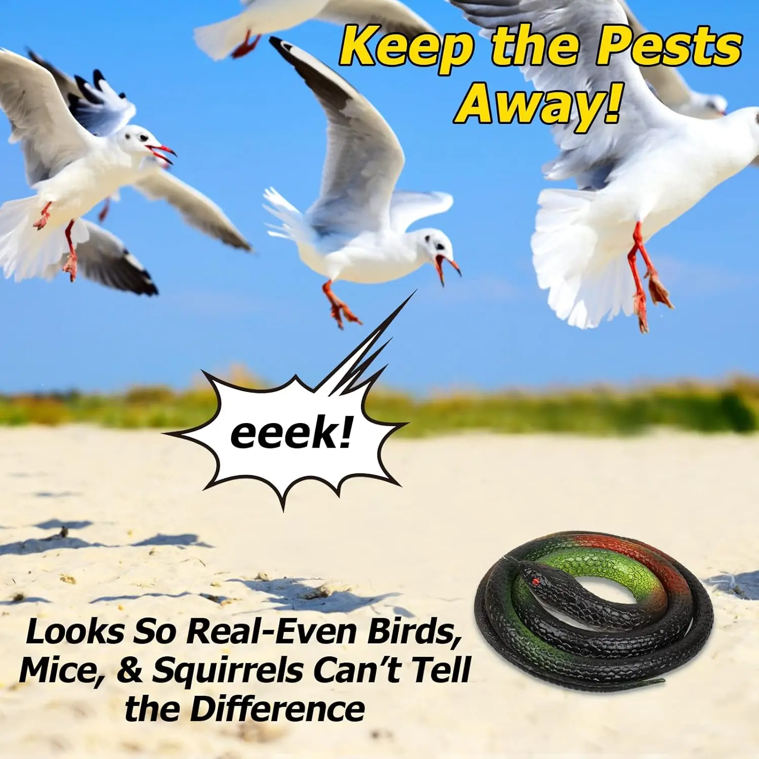 ·These realistic snakes can be applied to decorate your garden, wrap it around branch or place it on the grass, which can help scare birds and beast.
