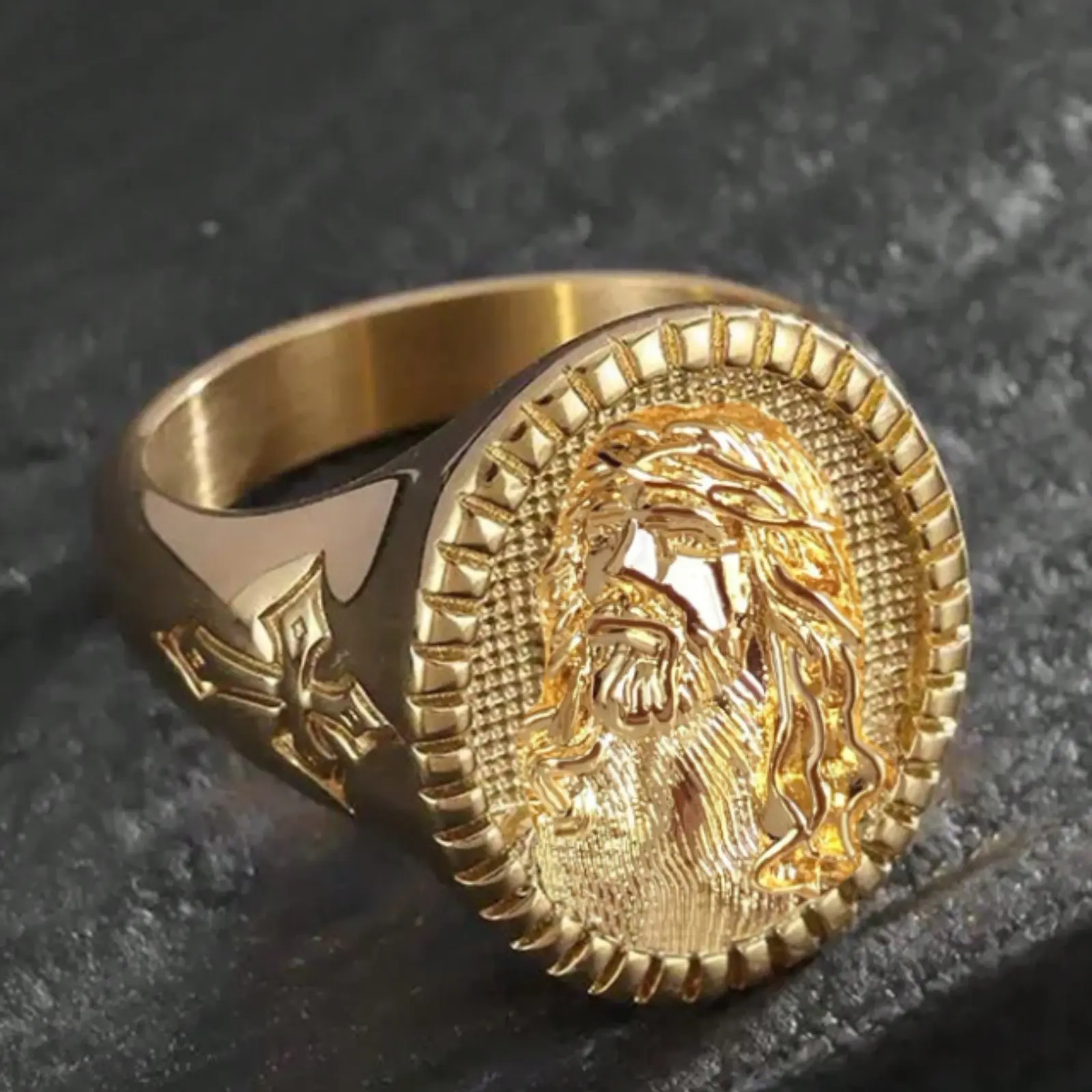 Elegant 18k Gold and Silver Jesus Christ Cross Ring, Vintage Country Jewelry Gift for Men - Party Accessories and Gifts