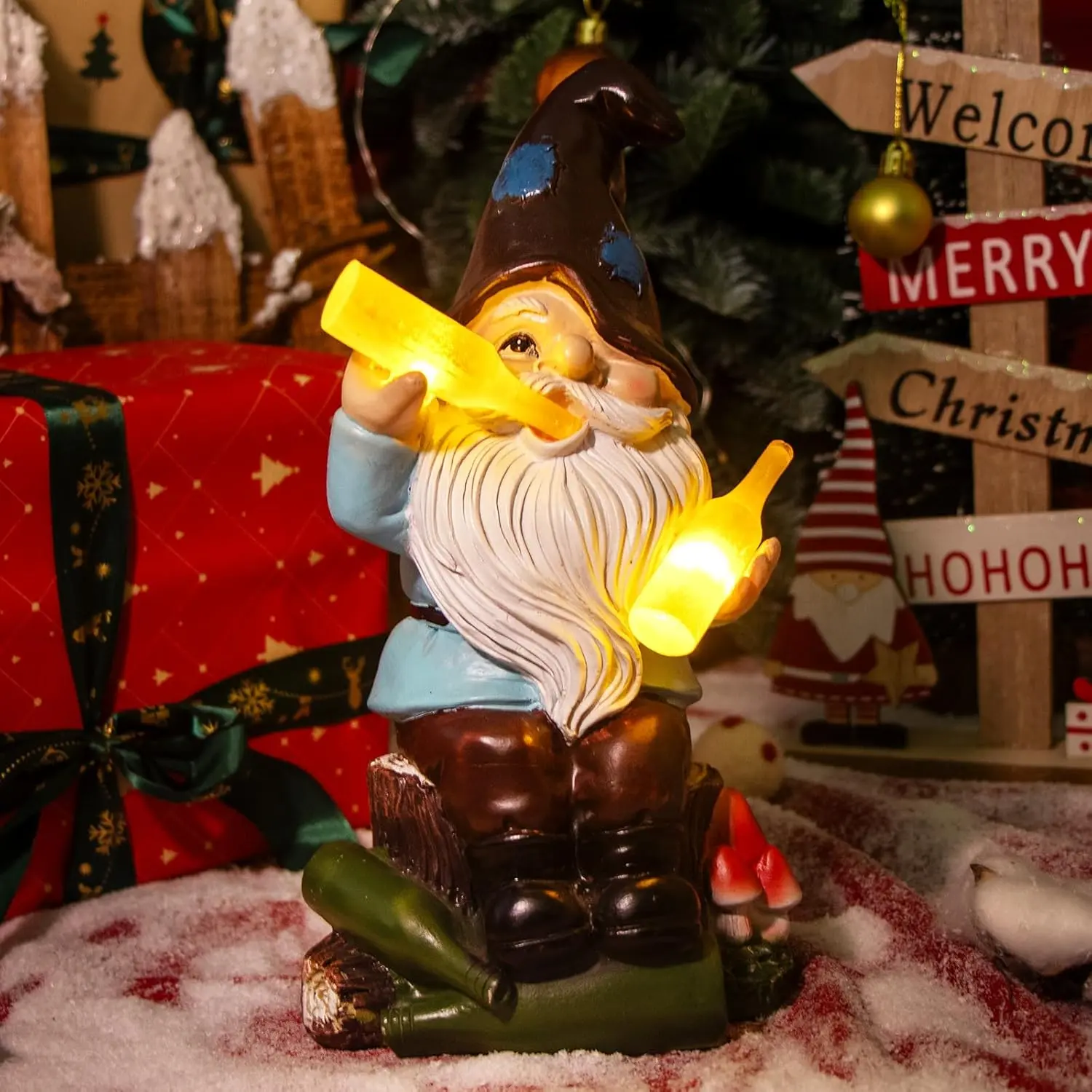 ·【Gnomes Gifts】 Funny garden gnomes are unique gnomes outdoor decorations to add a romantic touch to your garden!At night, bottle solar lights decoration of the gnomes will light up, as if there is really a mischievous gnomes in your garden!