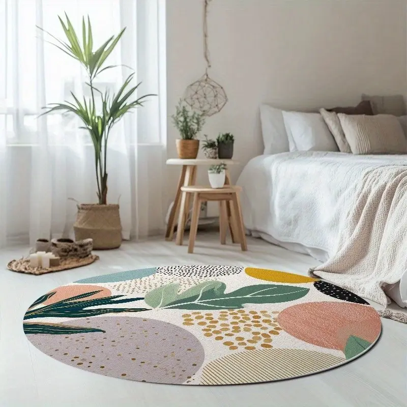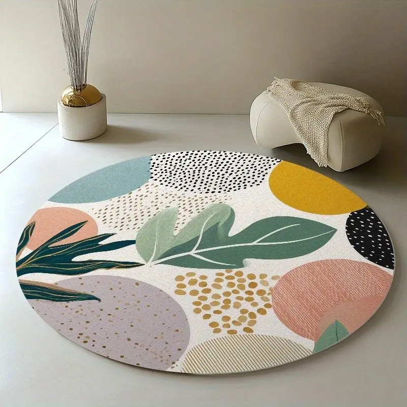 1pc Nordic Style Round Rug, 850g/m² Velvet Material, Living Room/bathroom/bedroom/camping/yoga Mat, Indoor/outdoor Use, Simple & Artistic