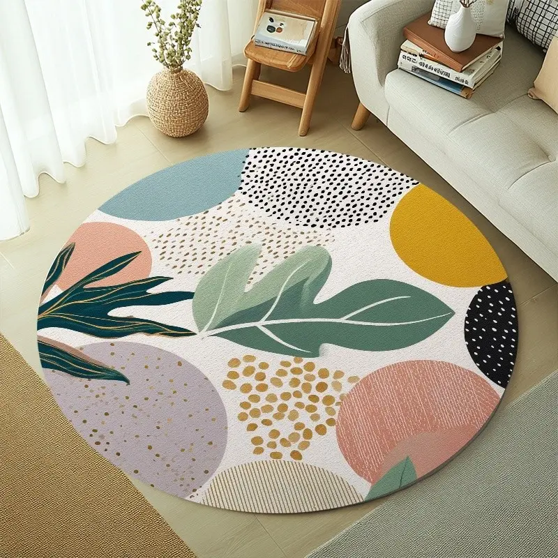 Nordic Abstract Round Rug, 850g/m² Velvet Material, Living Room/bathroom/bedroom/camping/yoga Mat, Simple Polyester, Indoor Outdoor Use