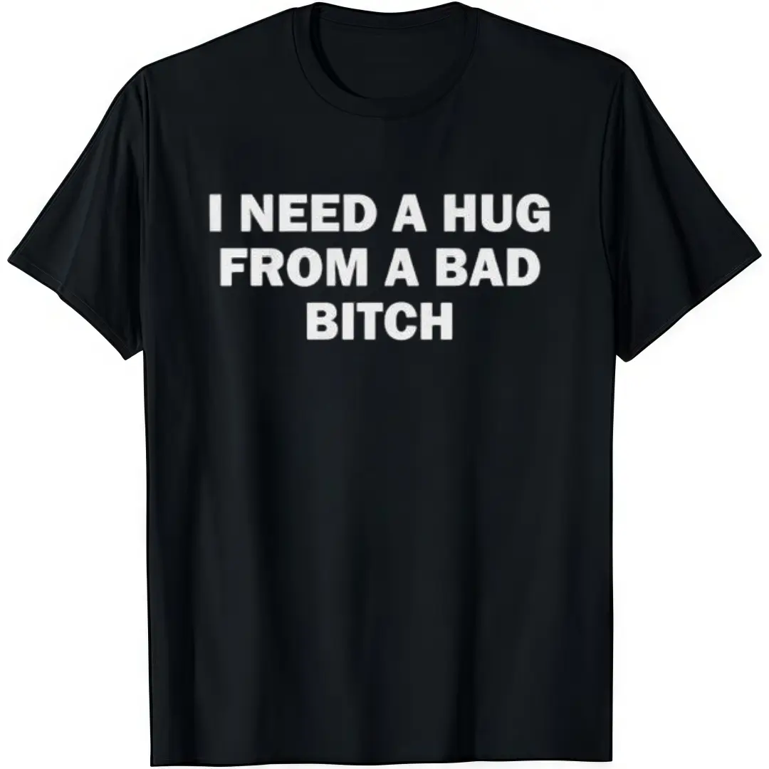 I Need A Hug From A Bad B*tch T-Shirt Cotton Crew Neck Short Sleeve Casual Classic Graphic Tee for Men Comfortable Versatile Everyday Wear
