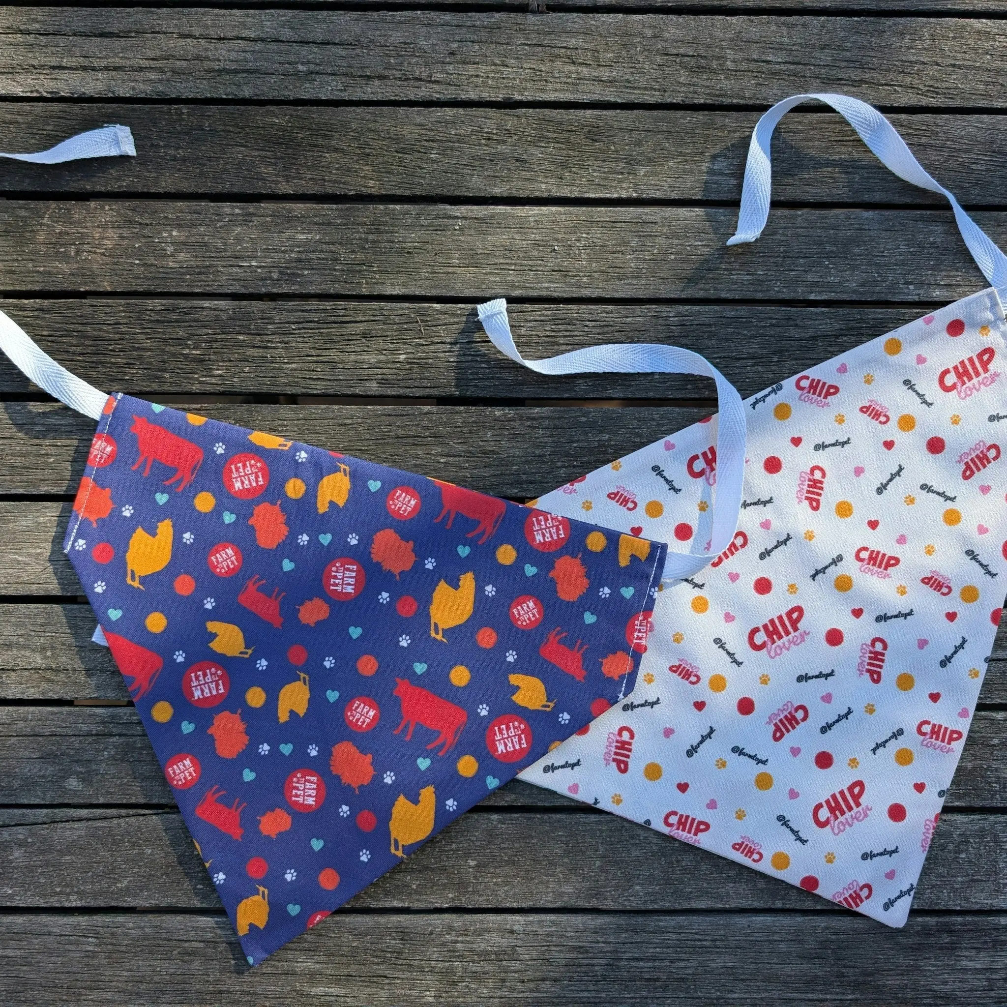 Sure, a bandana is first and foremost a dog accessory that is fun to behold - especially when it's a Farm to Pet design! But these string-tie bandanas are more than just a pretty scarf! With a smaller decorated panel of lightweight fabric and slim strings to tie around your pet's neck, these pet bandanas are easy for human hands to put on as well as easy for dogs and cats to wear. Great for smaller dogs, cats, and pets who don't like the bulk of traditional dog bandanas.