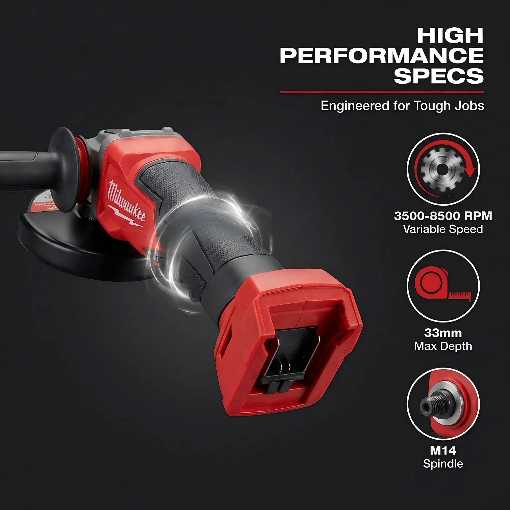 The Milwaukee 125mm brushless angle grinder is equipped with an efficient brushless motor and supports multi speed adjustment of 3500-8500 RPM, providing strong cutting and polishing performance. Maximum support for 125mm slicing and 33mm cutting depth.