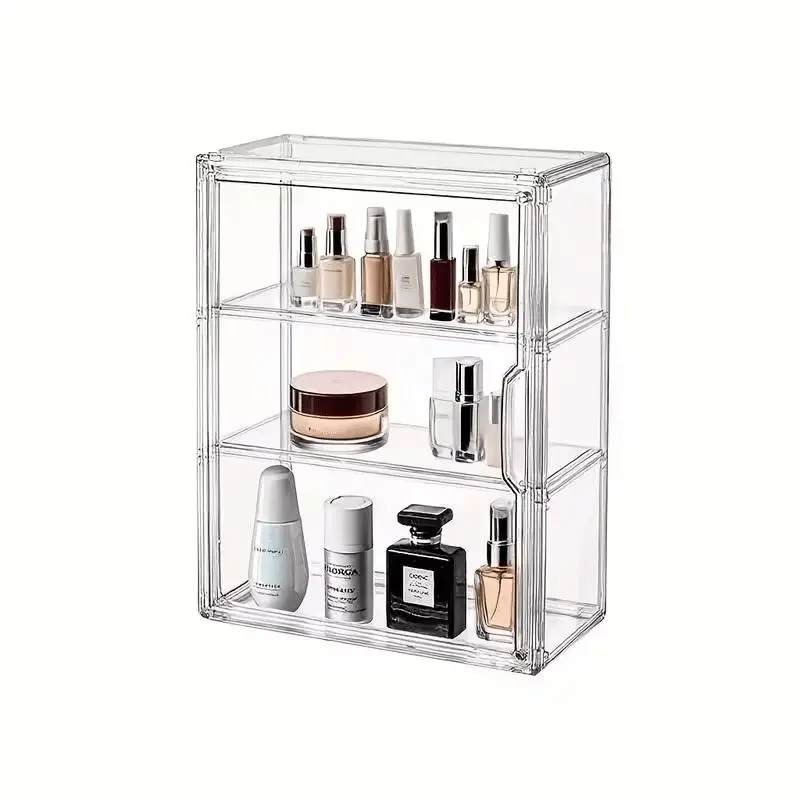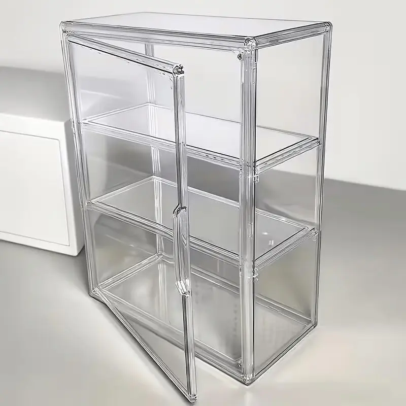 3-Tier Transparent Display Cabinet with Magnetic Door, Heavy-Duty Acrylic, Space-Saving Organizer, Modern Design, Holiday Gift, Retail Store
