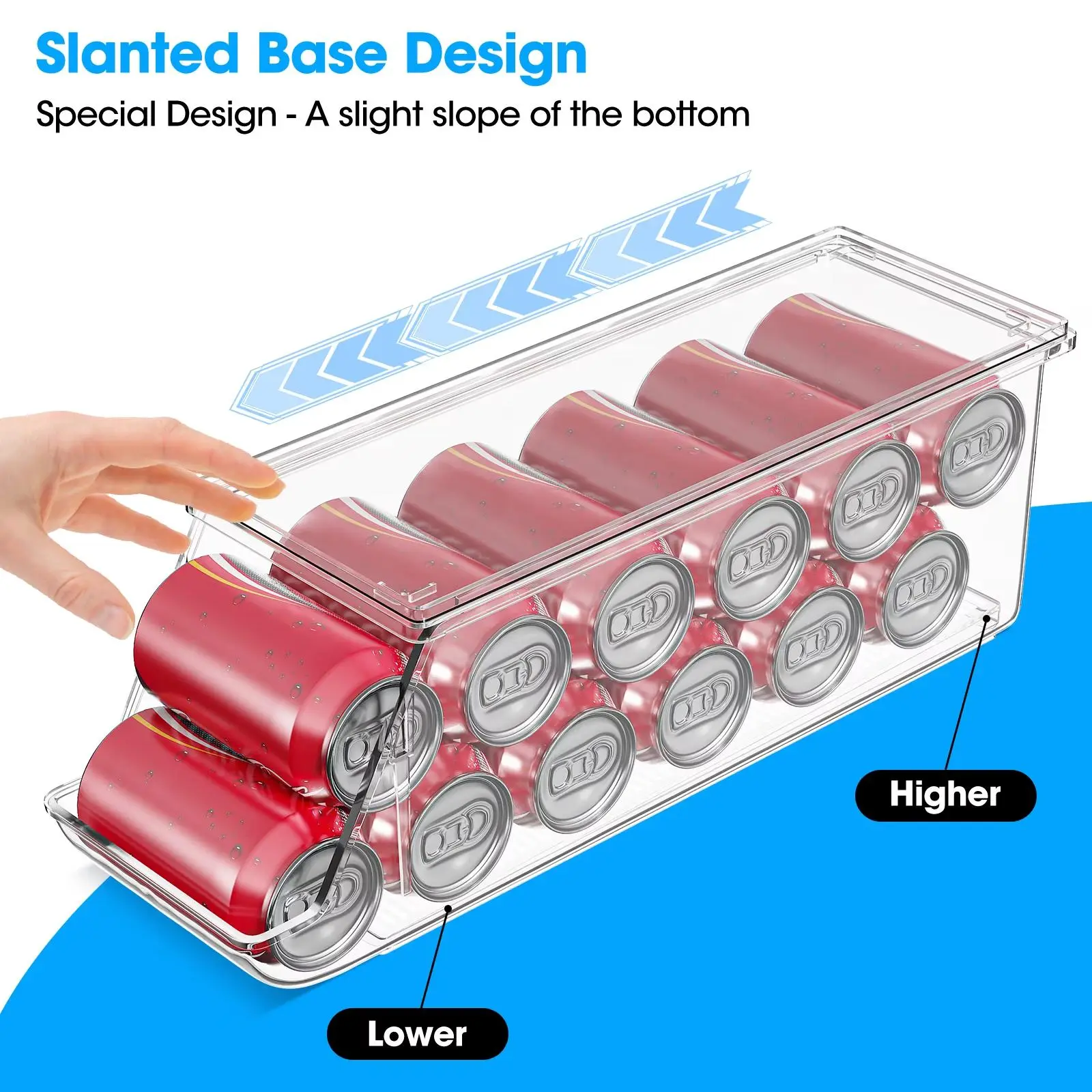 [U-Shaped Opening] - The strategically sloped base, paired with a large U-shaped opening, creates a natural rolling mechanism: removing the front can instantly positions the next beverage within reach—no need to pull or adjust the organizer. This layout lets you organize drinks by expiration date, placing newer cans at the back and older ones up front, preventing expired consumption and potential health risks. Alternatively, place favorite flavors at the front for instant access, blending practical can storage with personal convenience—functioning as both a can drink dispenser and a smart soda storage assistant. [Versatile Food Storage] - While exceptionally effective as a can organizer for fridge in refrigerating beverage cans like soda, this versatile refrigerator organizer is equally ideal for your pantry or kitchen countertop. The drink organizer for pantry neatly arranges canned goods such as tomatoes, fruit, spam, and other canned foods or condiments—keeping everything easily accessible and organized in any fridge organizers and storage system. [Wide Base Groove Design] - Unlike other soda organizer for fridge products, the front base of our refrigerator organizer incorporates a widened and deepened groove that securely cradles beverage cans to prevent slipping while ensuring easy retrieval. Combined with an elevated anti-slip base, this can organizer effectively reduces wear for enhanced durability. Our freezers organizer bin features a protective lid that prevents cans from being crushed when stacked while keeping out dust. The lid is equipped with stability strips for secure stacking. [Stackable & Large-Capacity] -With dimensions of 17.13"L × 5.91"W × 5.91"H, our soda can organizer holds up to 12 standard soda cans (11.16 oz each) with ease, while typical drink organizer for refrigerator models only accommodate 10. The lidded design enables secure stacking to maximize vertical space, offering a truly efficient can storage organizer solution that saves valuable room. [Durable & Clear Material] - Crafted from premium thickened PET material, this can organizers for pantry offers exceptional transparency, allowing you to quickly identify soda flavors and access favorite beverages. The robust drink organizer ensures shatter-resistant durability for long-term use, with smooth rounded edges for safe handling. The surface cleans effortlessly with a simple wipe, keeping your fridge organizer and soda organizer hygienic and clear. If you encounter any issues with the product, please feel free to contact us. We provide 24-hour after-sales support to assist you.