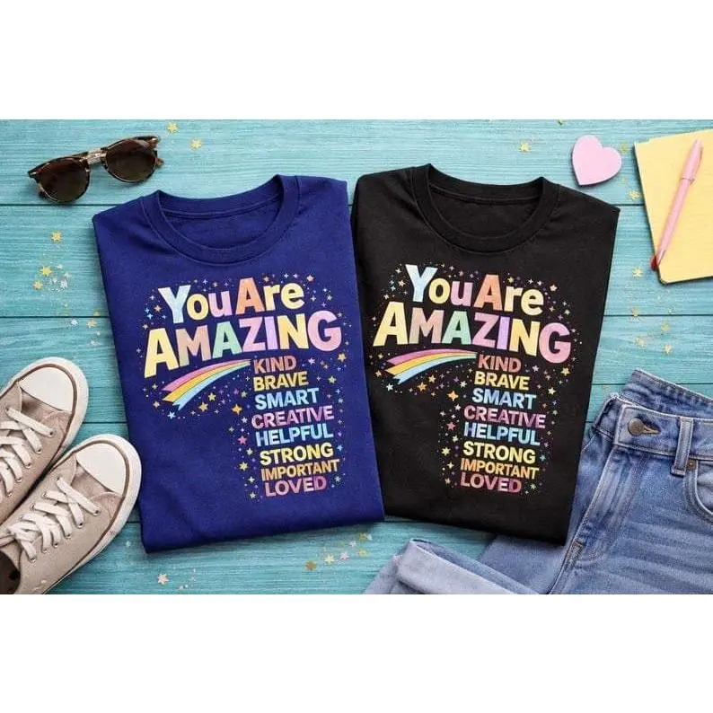 You Are Amazing Affirmation Shirt, Positive Message Tee, Inspirational Mental Health Shirt, Kind Brave Smart Graphic T-Shirt Gift