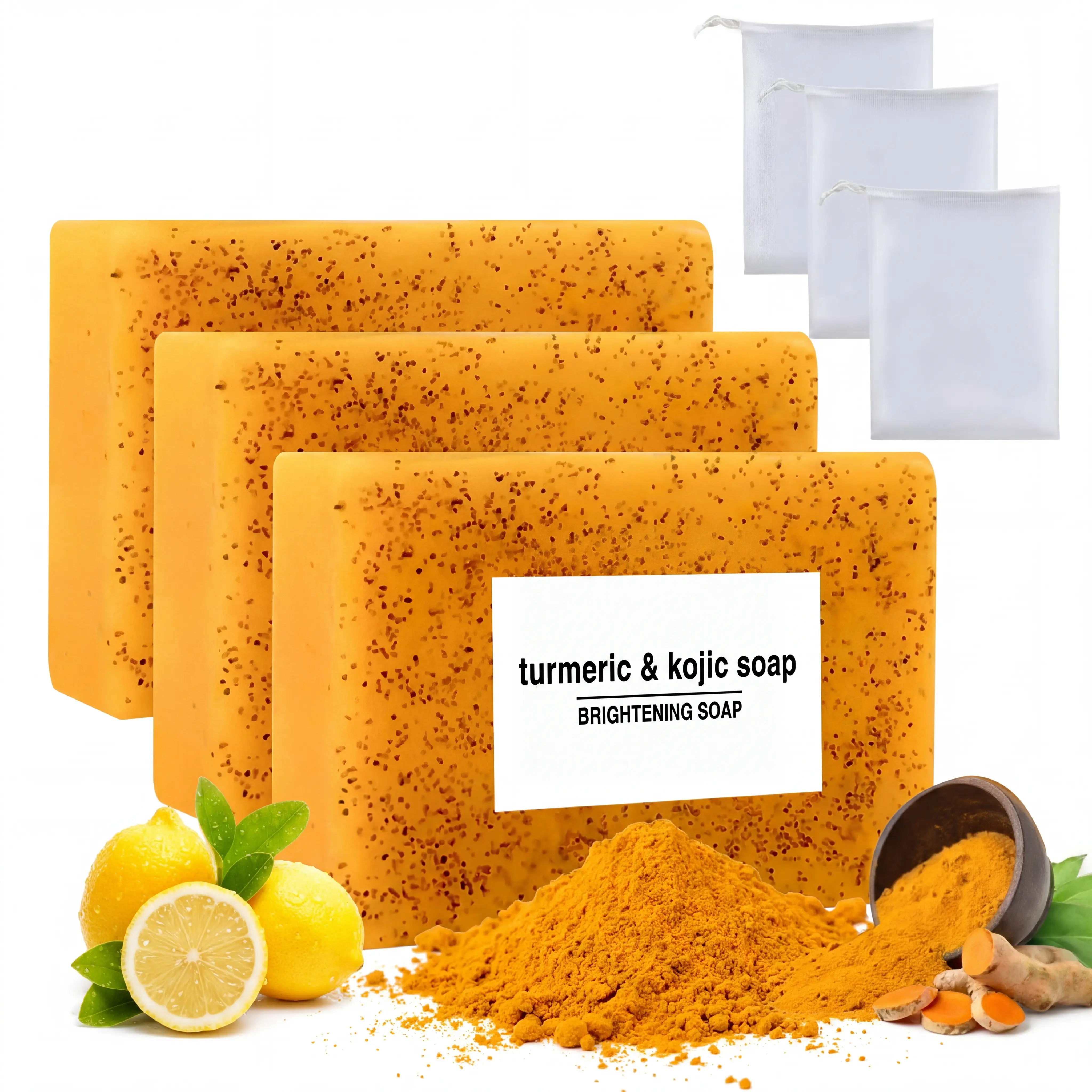 ·Our turmeric and kojicacid bar may cleanse your skin, may improve dark spots, may reduce hyperpigmentation, and may reduce acne on the face and body. This bar can be used over the whole body—safe and gentle enough for everyday use.